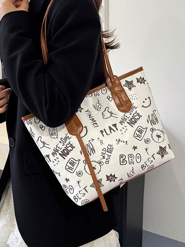 Casual Large Capacity Tote Bag Women's 2025 New Fashion Printed Cross-Border Large Bag Handbag Women's Shoulder Bag