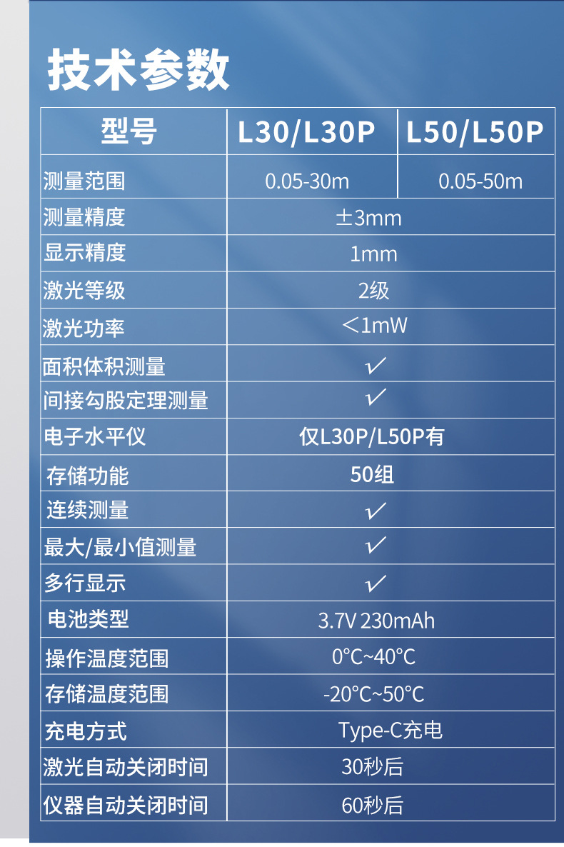 L-50p comes standard with electronic level