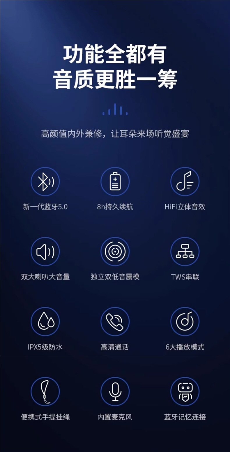 Deep black [dual-diaphragm speaker + 9d three-dimensional shocking sound quality + five playback modes]
