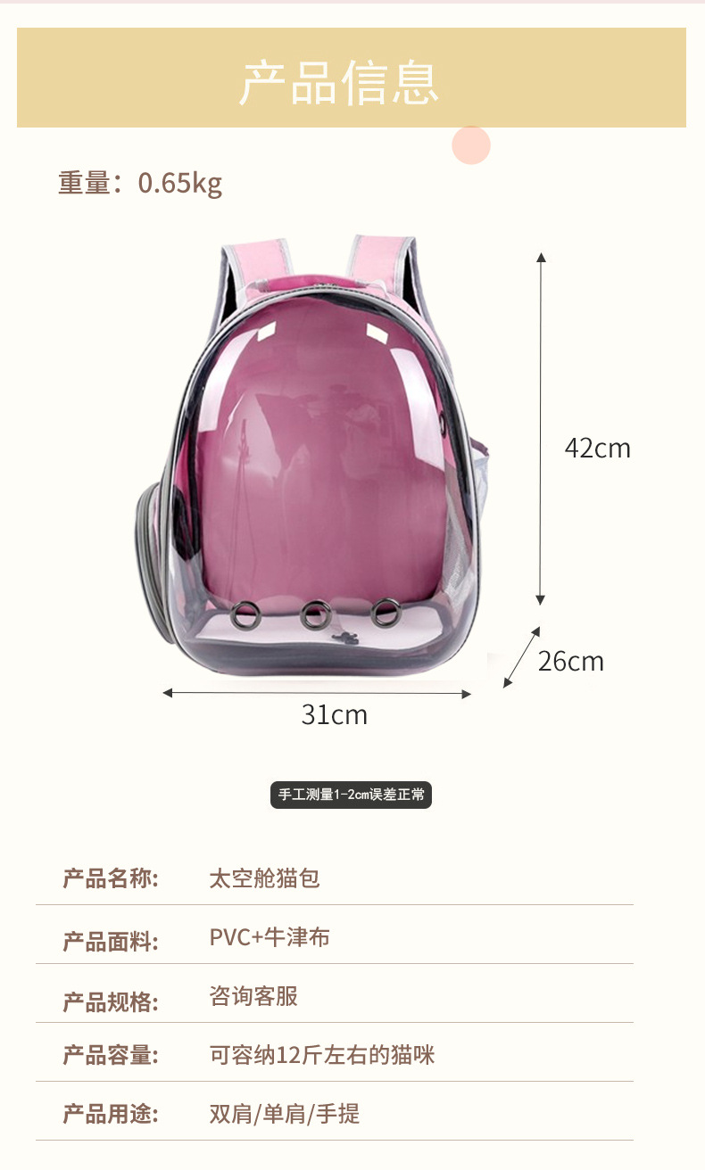 New Cat Bag, Pet Backpack, Portable Space Pet Cabin Bag, Backpack, Cage Backpack, Cat Supplies