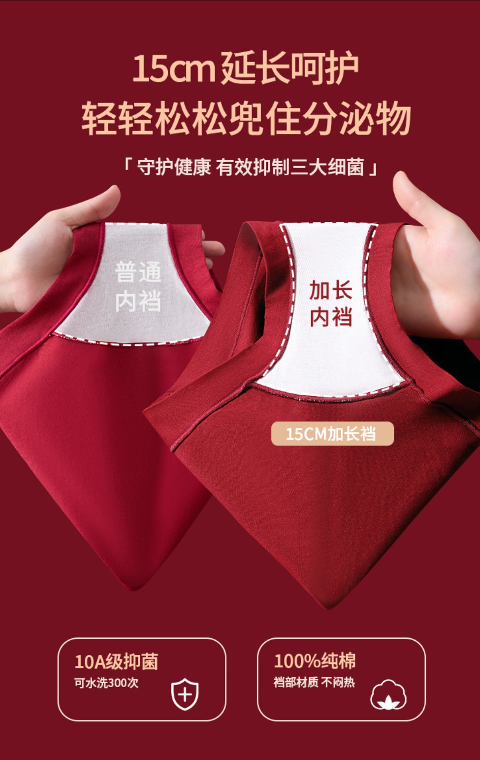 15cm加长底裆,贴合生理结构,再也不用担心黏腻摩擦;