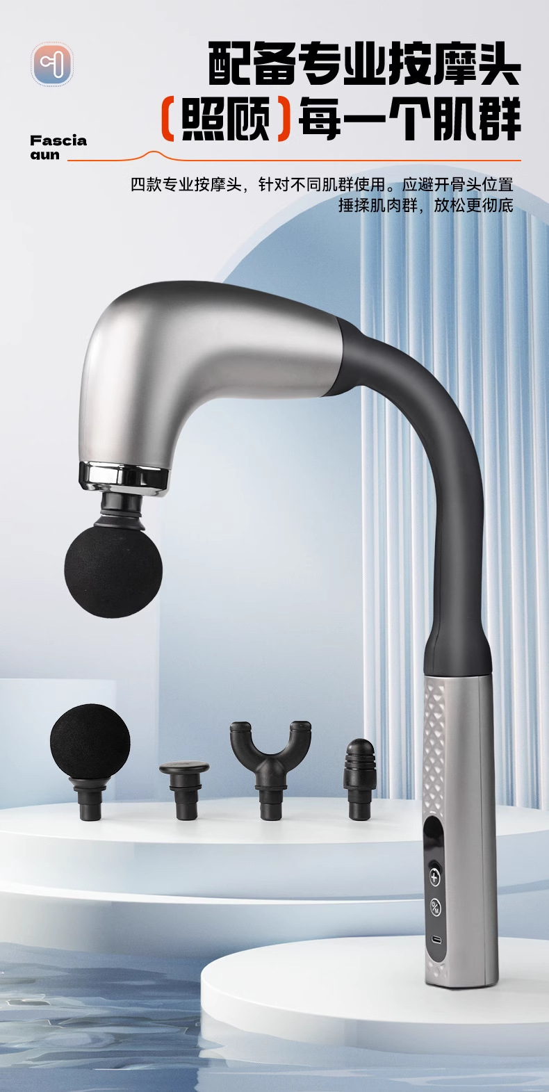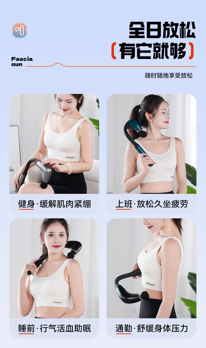 U-Shaped Hook Fascia Gun Electric Massage Silent Muscle Relaxation Fitness Extended Back Hammer Lcd Multi-Speed