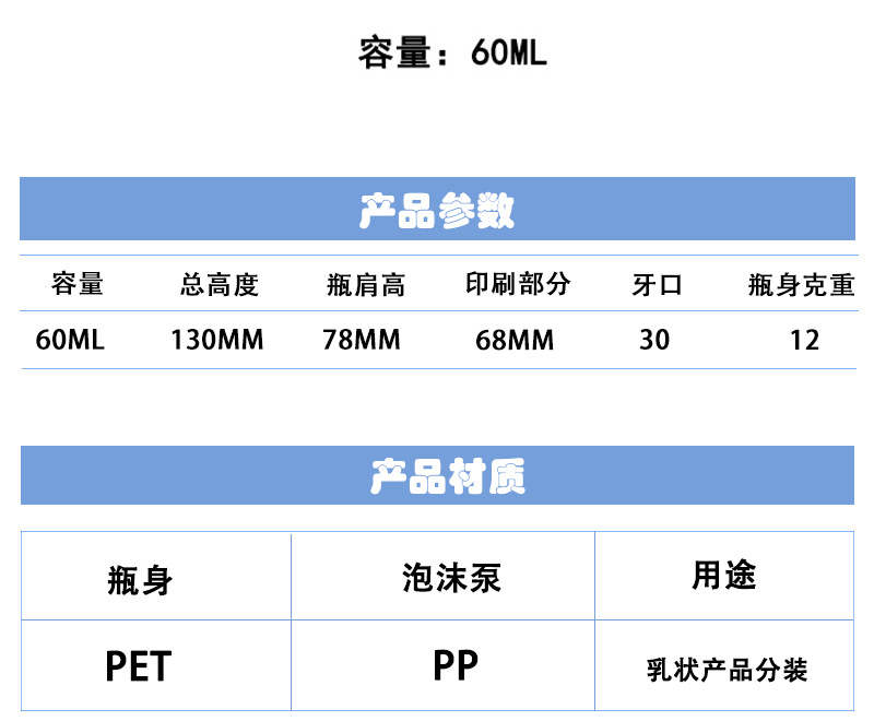 Yigao Pet Cosmetics Wholesale Plastic 60ml Portable Press-Type Mousse Foaming Bottle Facial Cleanser Dispensing Bottle