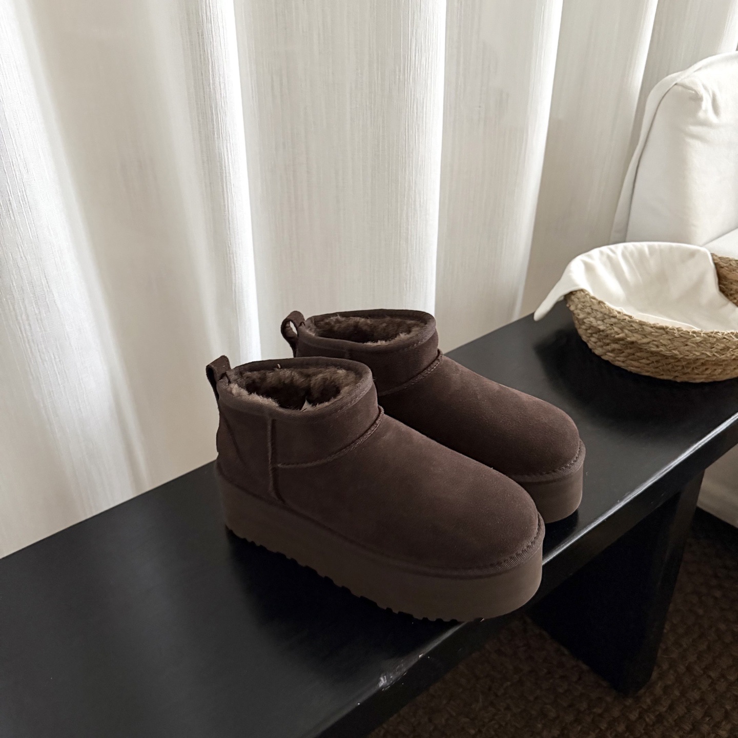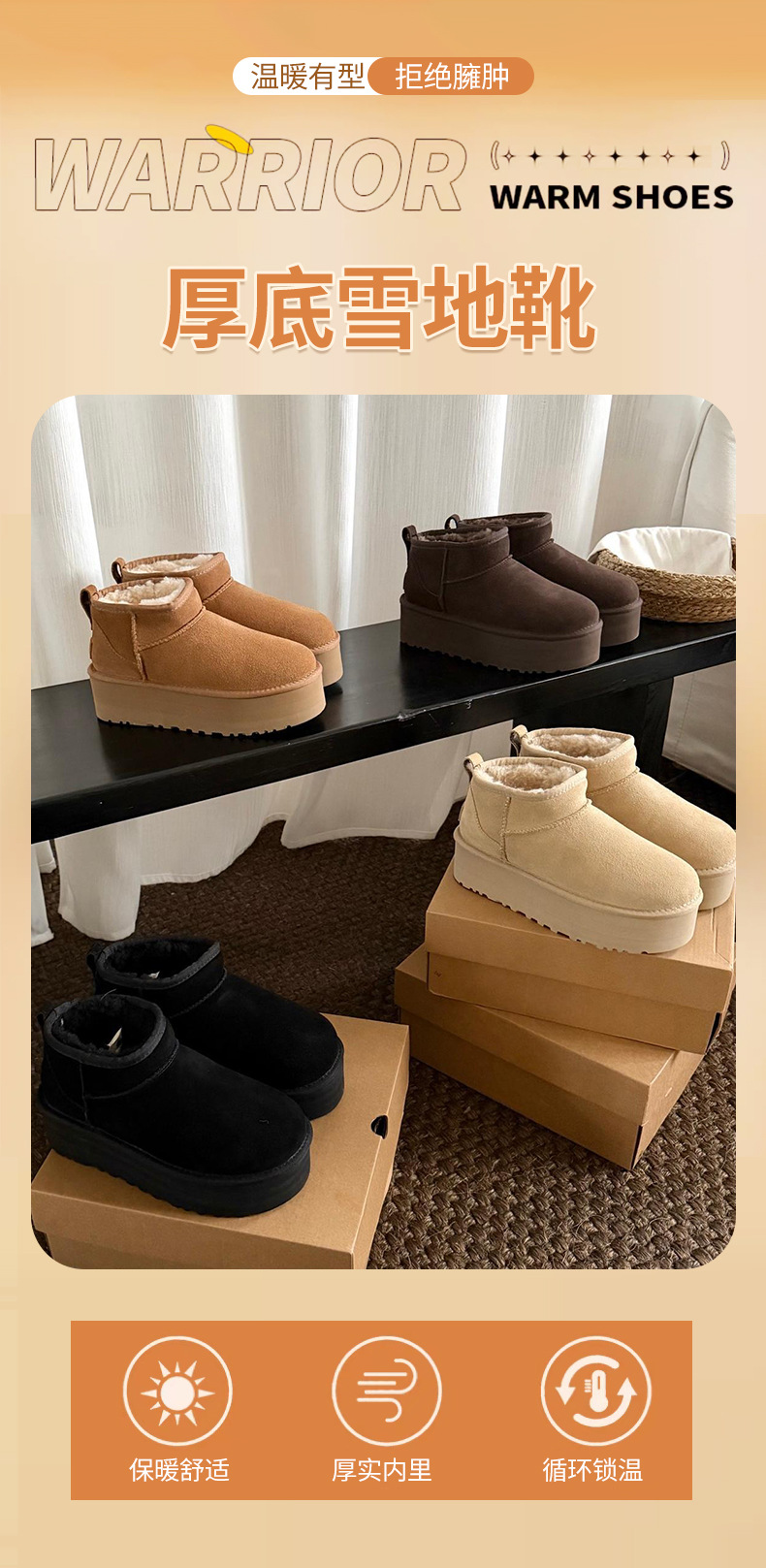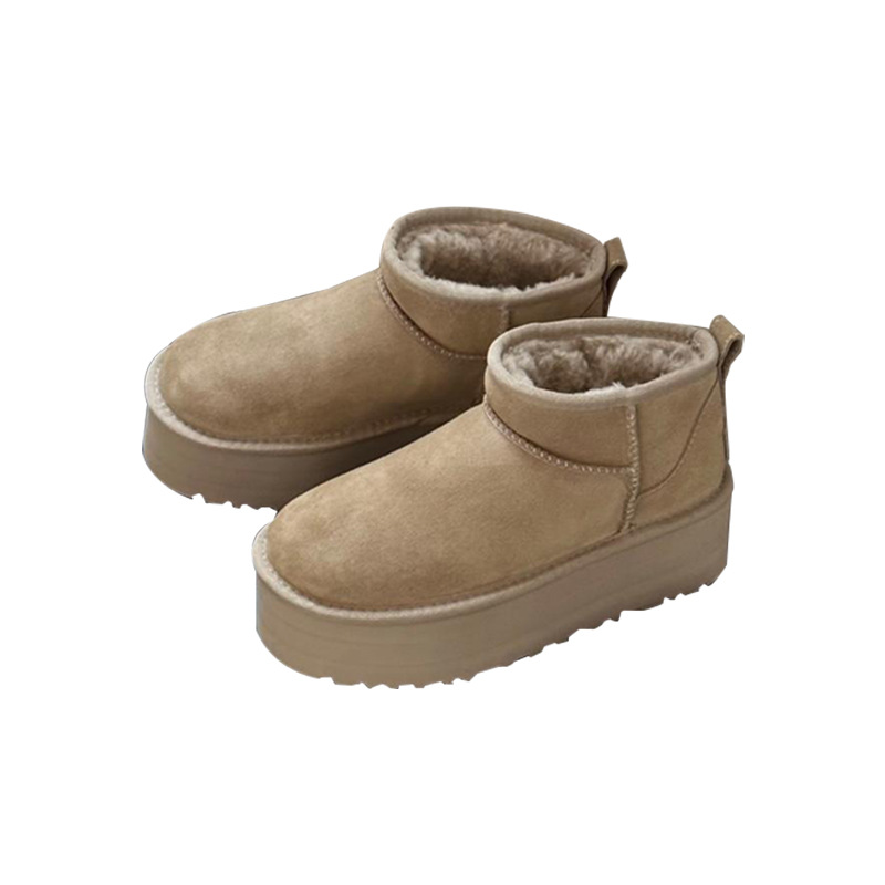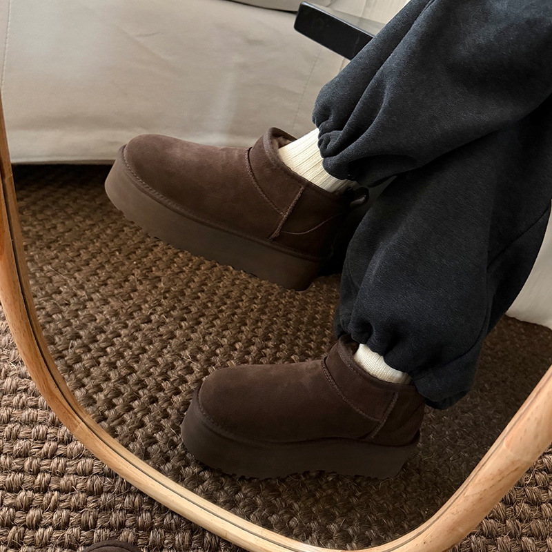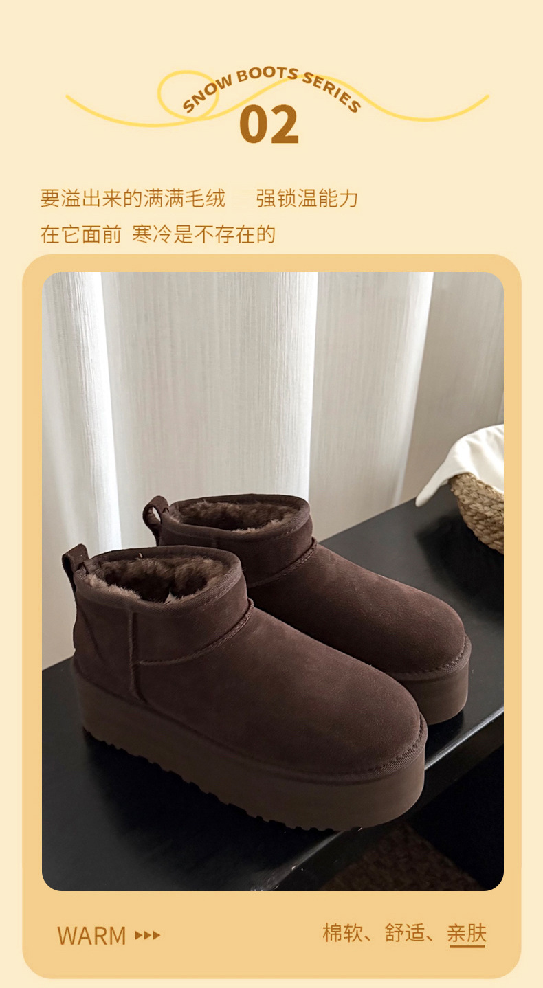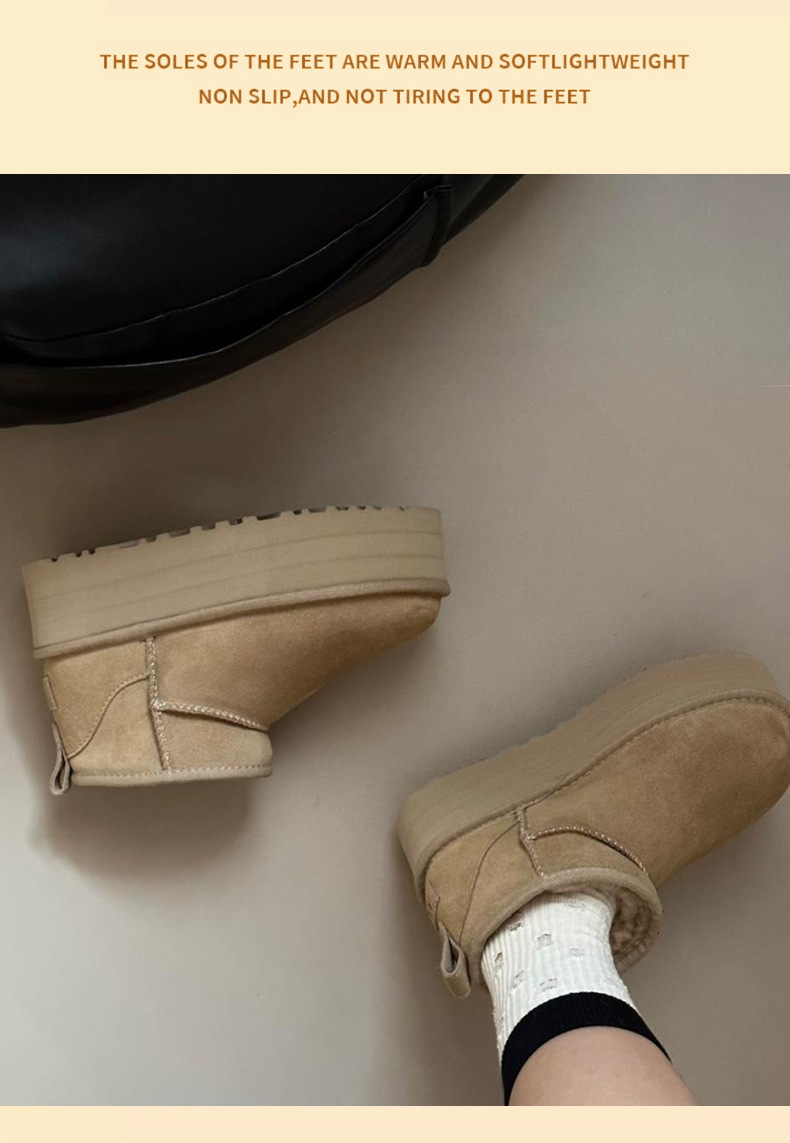 Henan Sangpo New Snow Boots Zhou Dongyu Same Style 5cm Thick Sole Fleece-Lined Heightening Short Boots Warm Fur Boots for Women