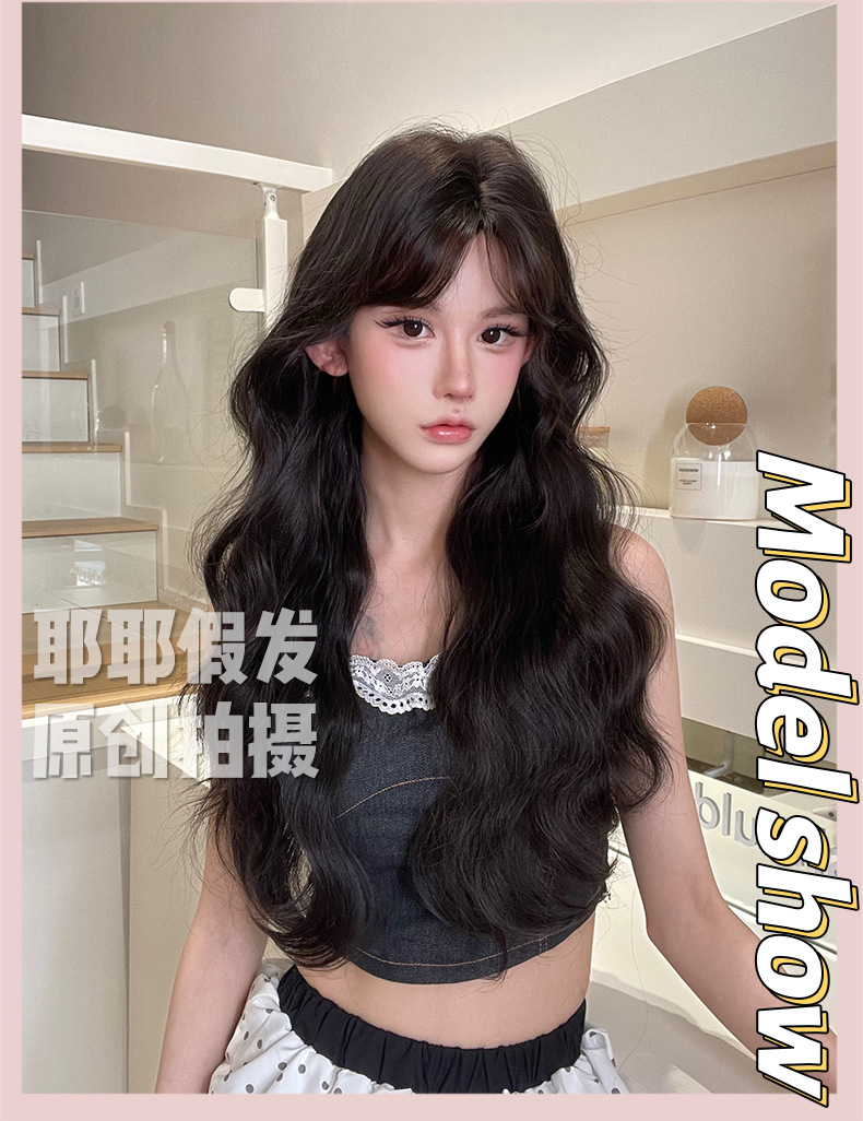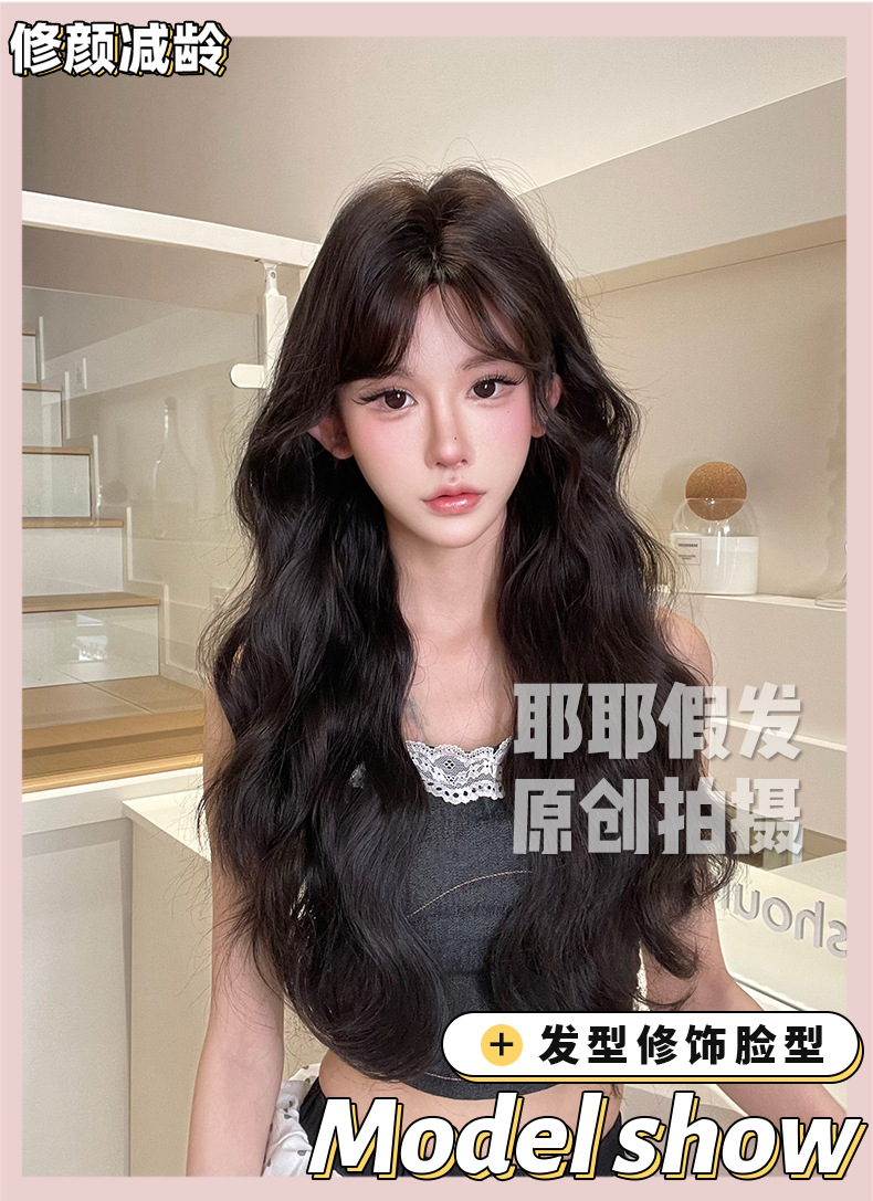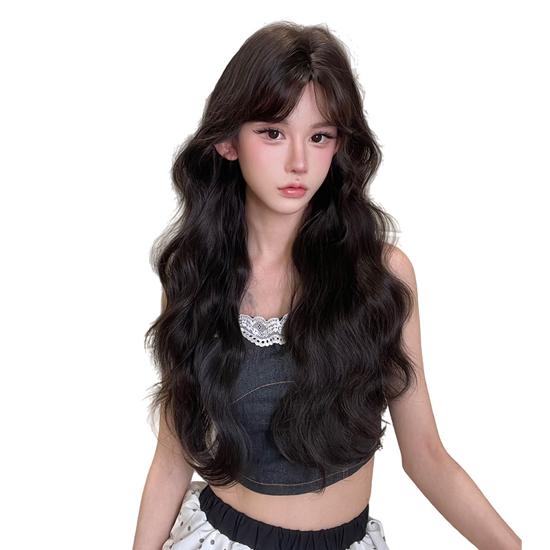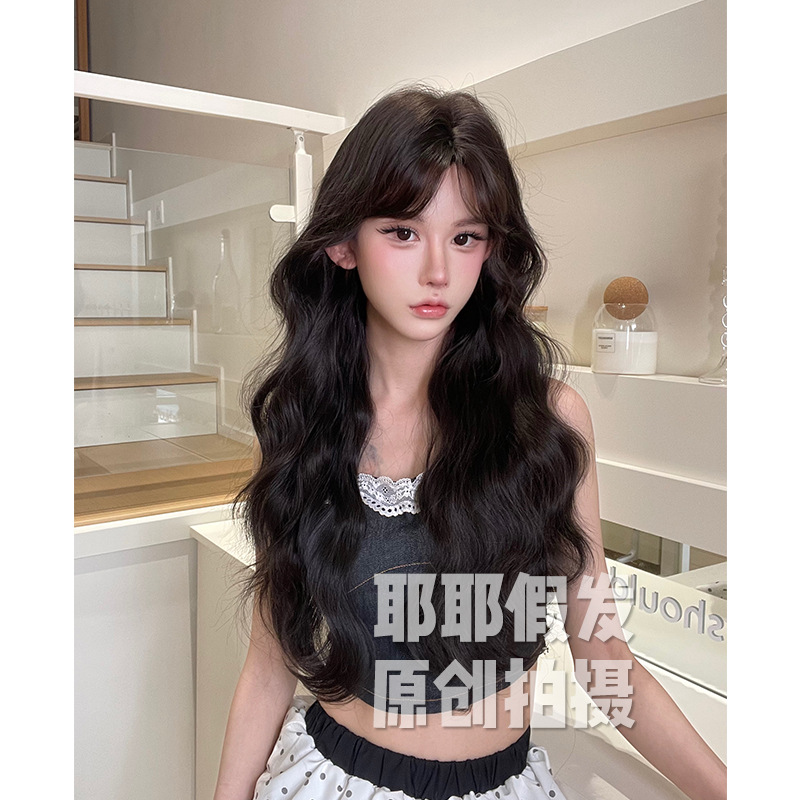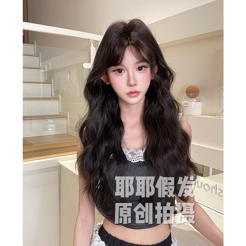 Yeye Wig Full Head Cover for Women Korean Style Lazy Wool Curly Real Hair Artificial Hair with Bangs Long Curly Wig Set