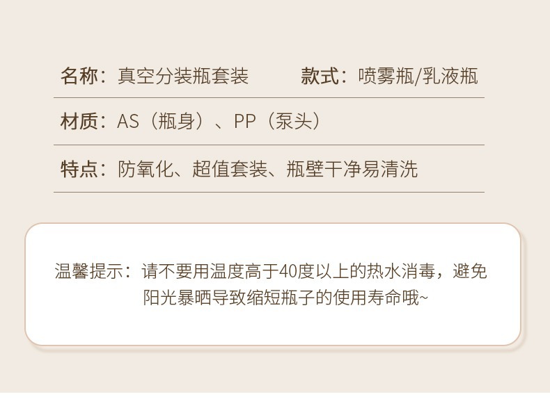 5ml vacuum lotion bottle 3 + spray bottle 1 (send storage box + dispensing tool)