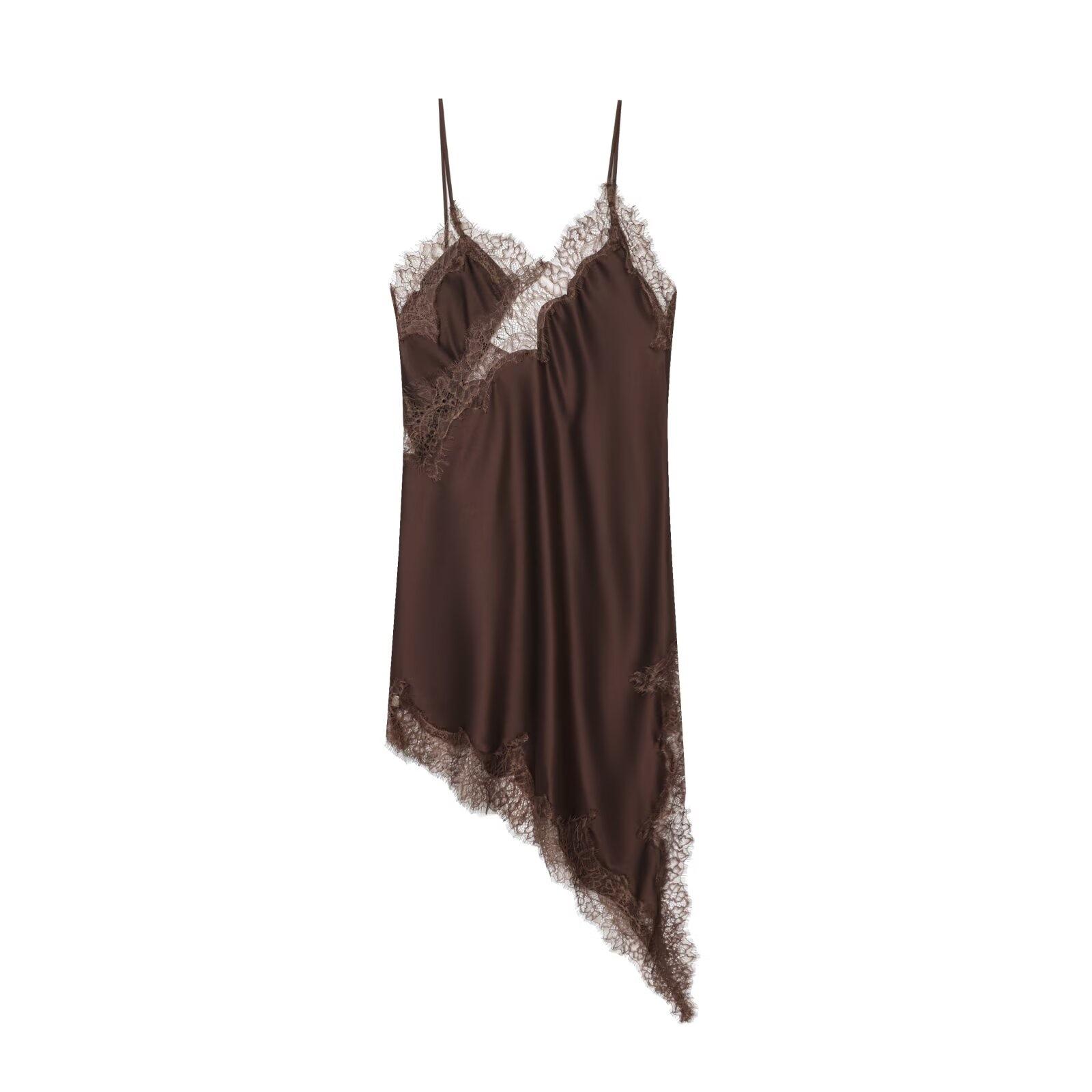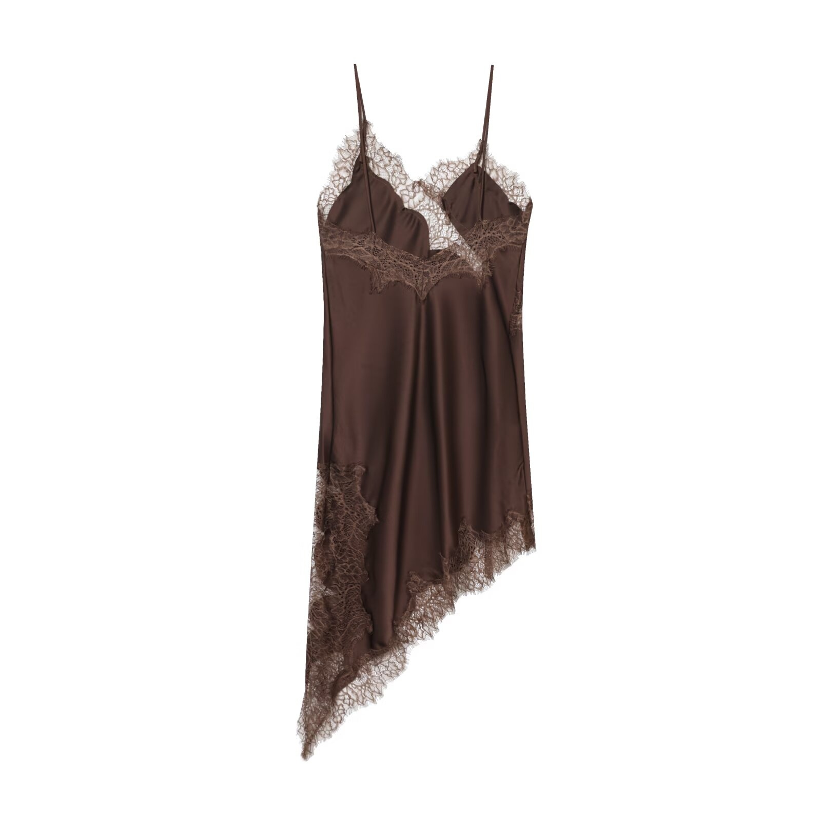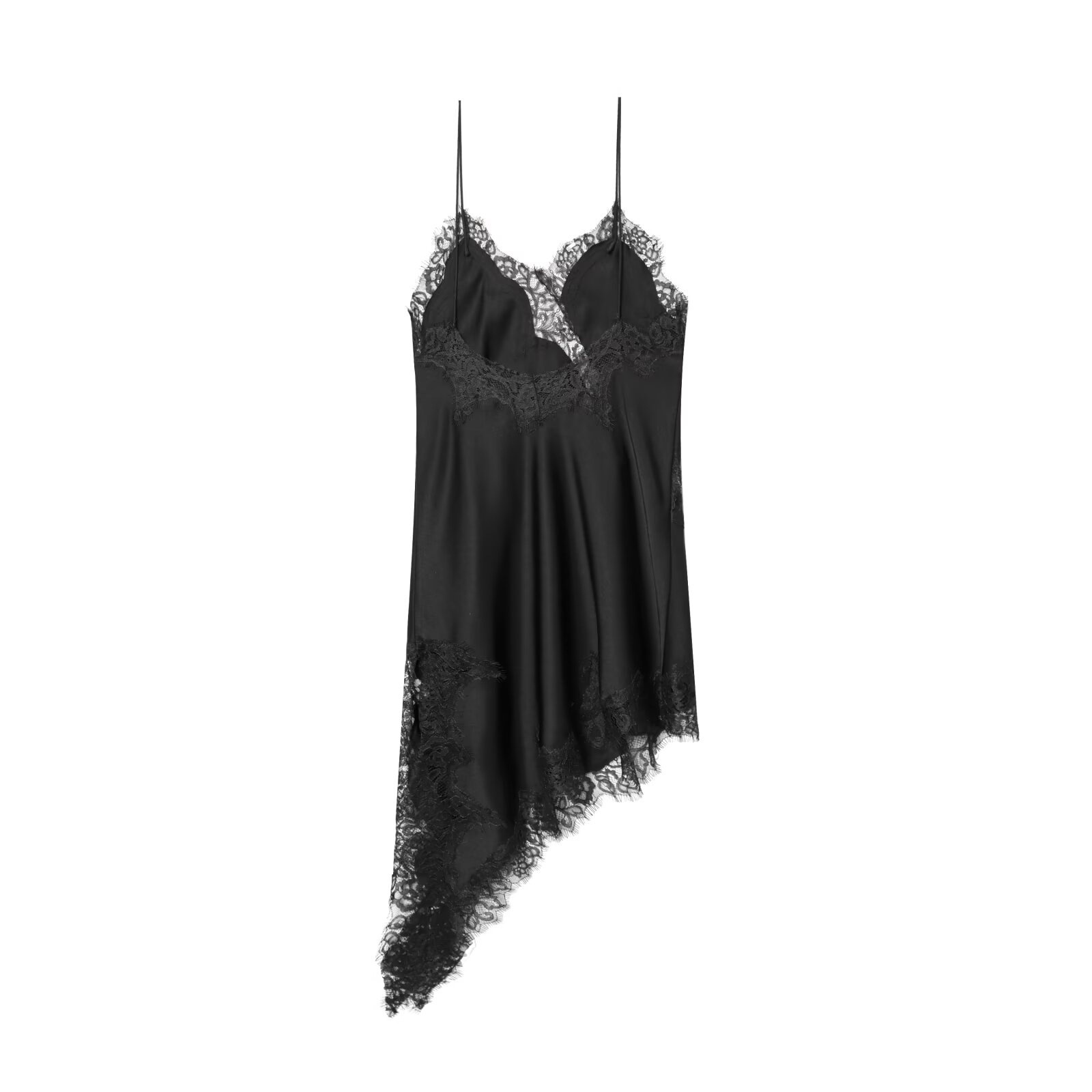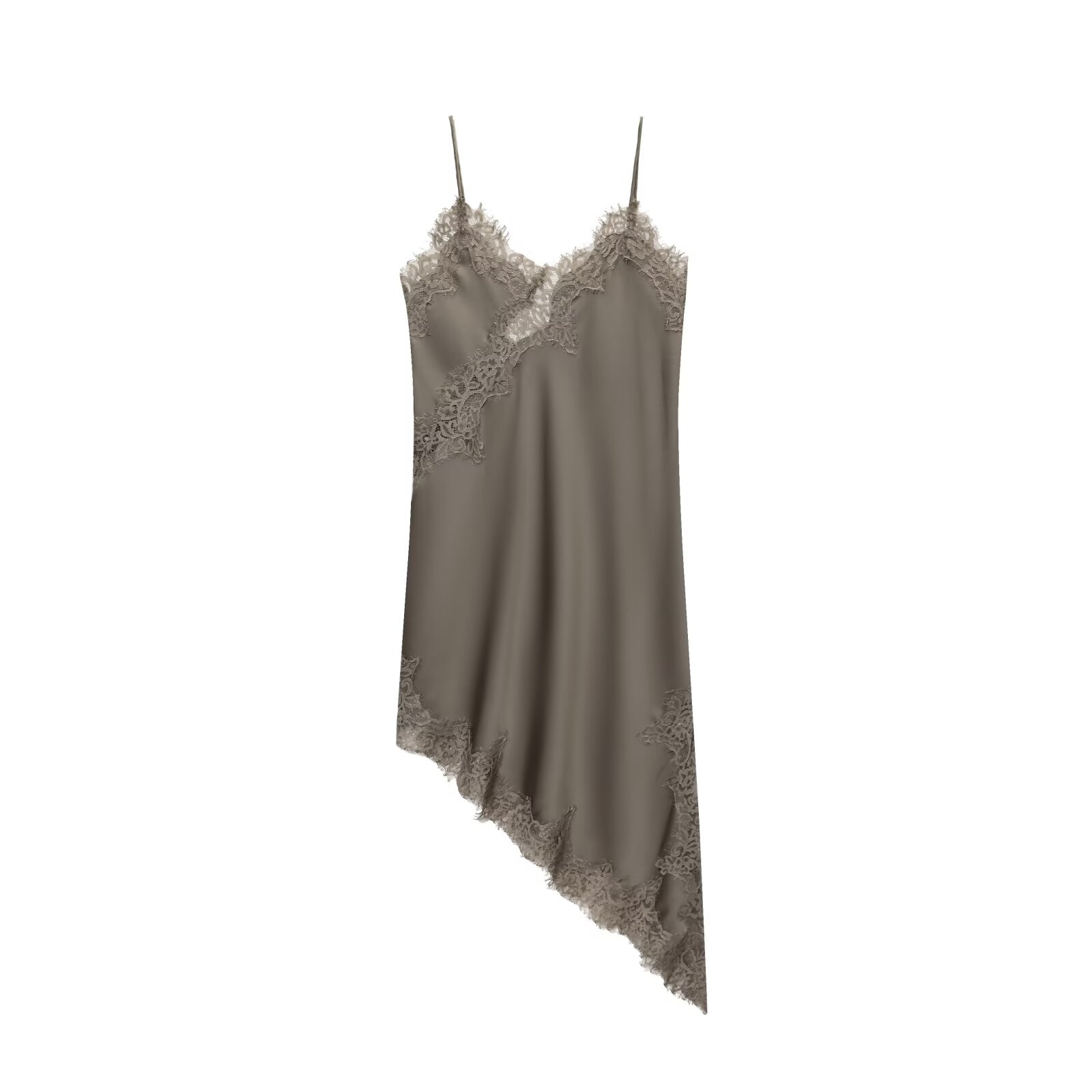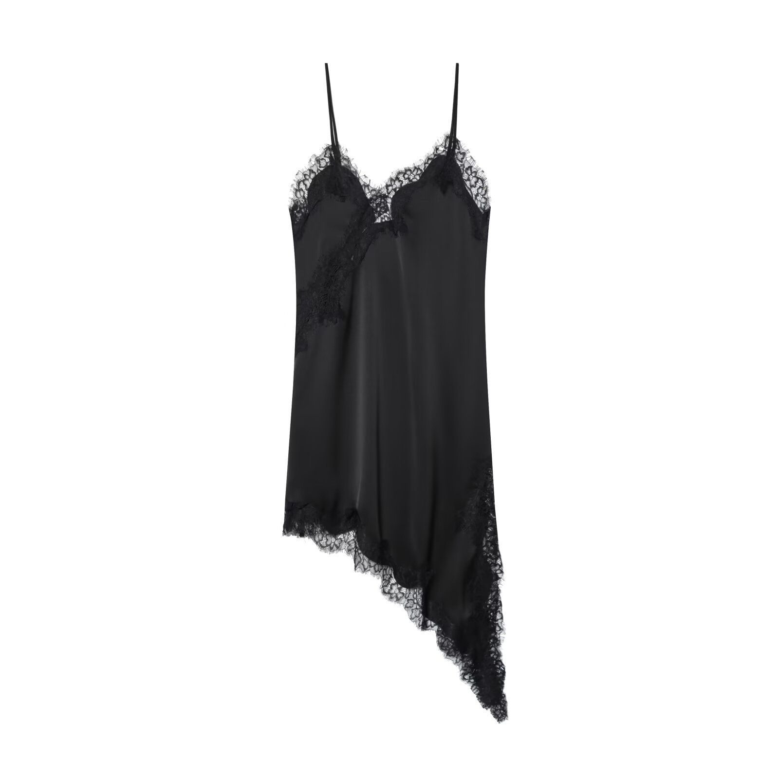 Pb&Za Cross-Border Supply 2025 Winter New European and American Style Lace V Neck Sleeveless Asymmetric Suspender Dress