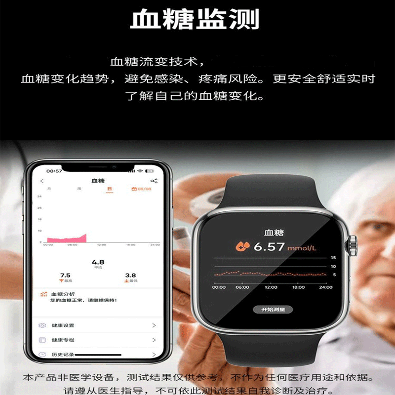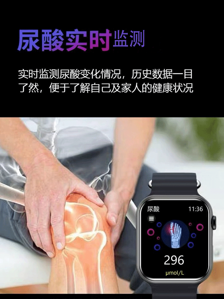 German High-Precision Needle-Free Three-High Monitoring New Blood Glucose Meter Bracelet Uric Acid Blood Pressure Blood Lipids Heart Rate Smart Watch
