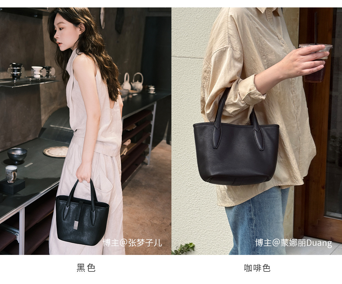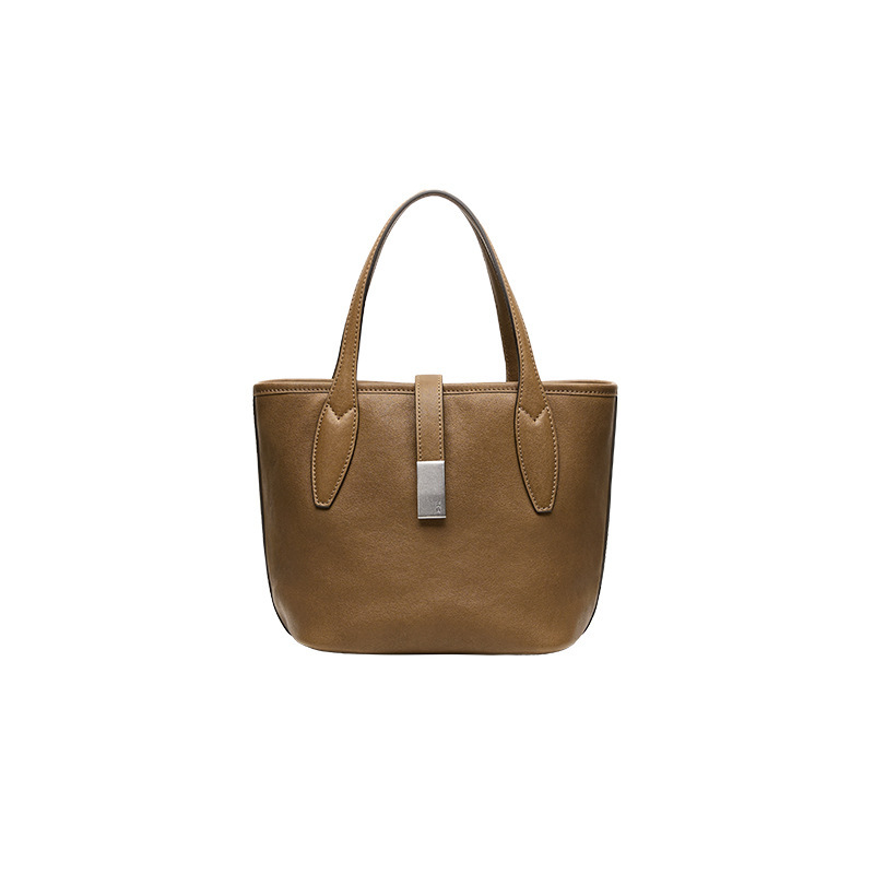 Genuine Vegetable-Tanned Leather Large-Capacity Tote Bag, Crossbody Bag, High-End Commuter Leather Bucket Bag for Women