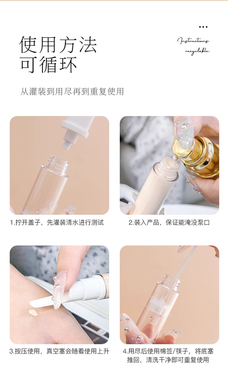 Liquid Foundation Dispensing Bottle Pen Push-Type Vacuum Duckbill Cosmetics Anti-Oxidation Lotion Eye Cream Travel Portable Sample