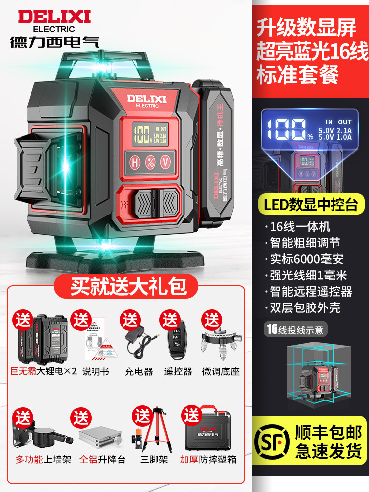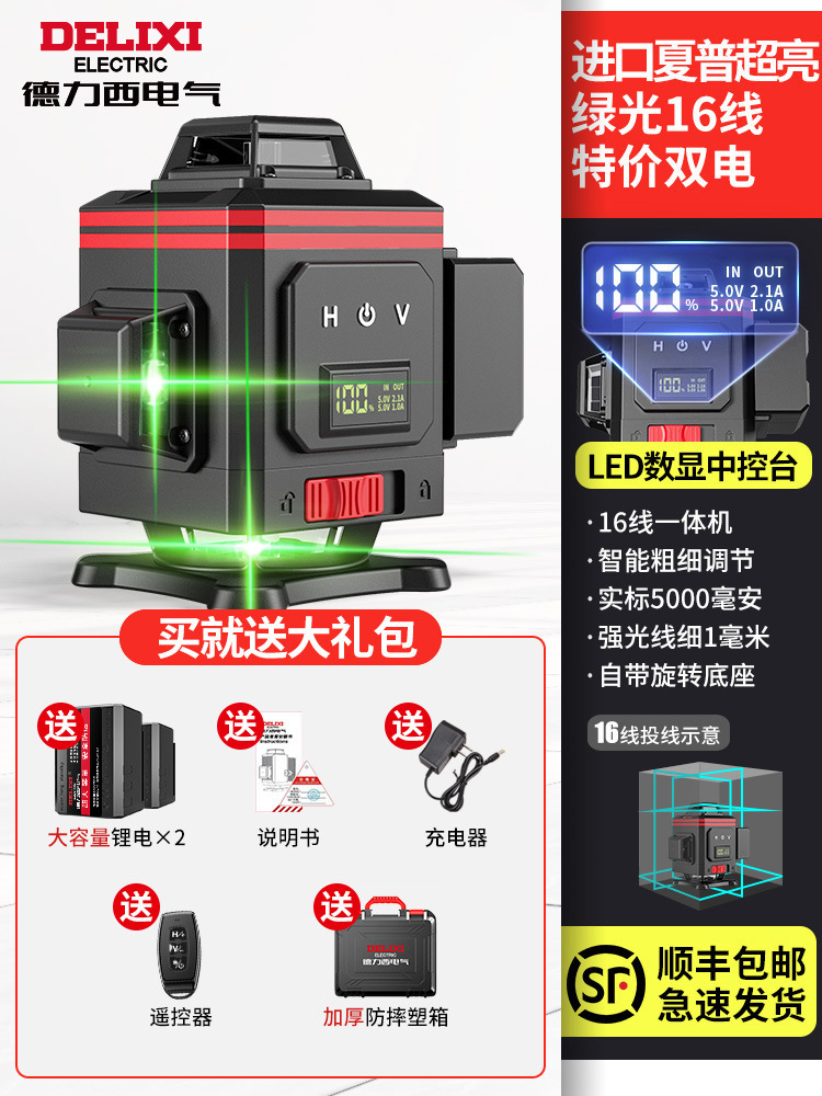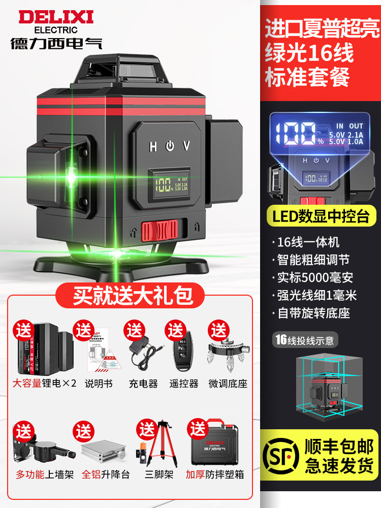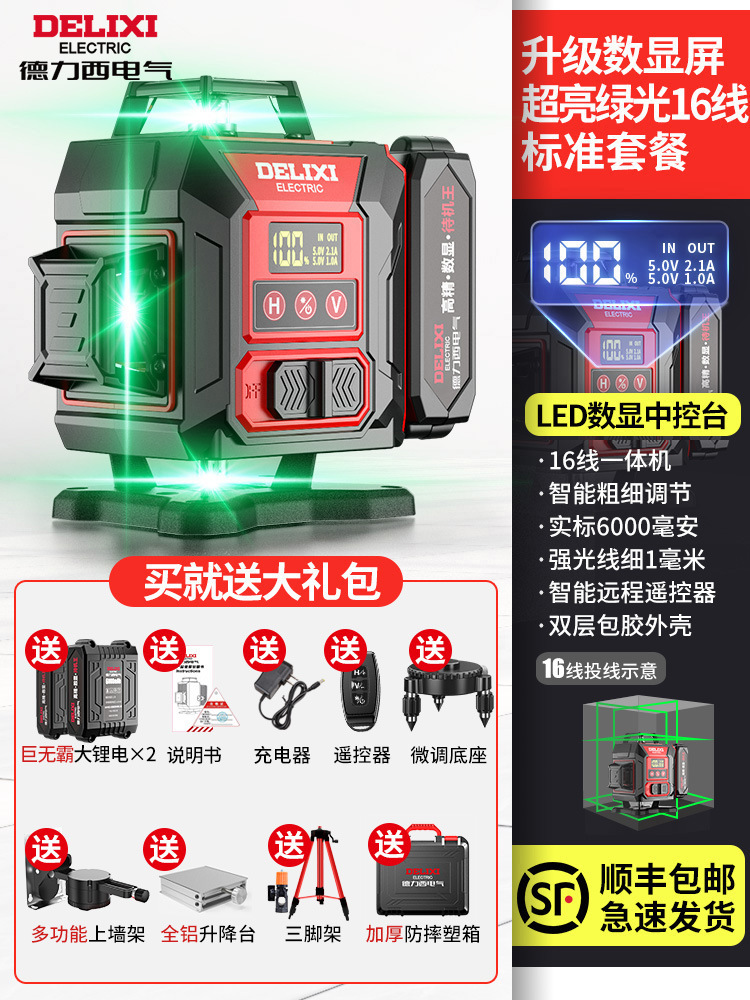 [professional-grade digital display central control] super bright green light 16-line big mac dual battery + wall mount + base + tripod