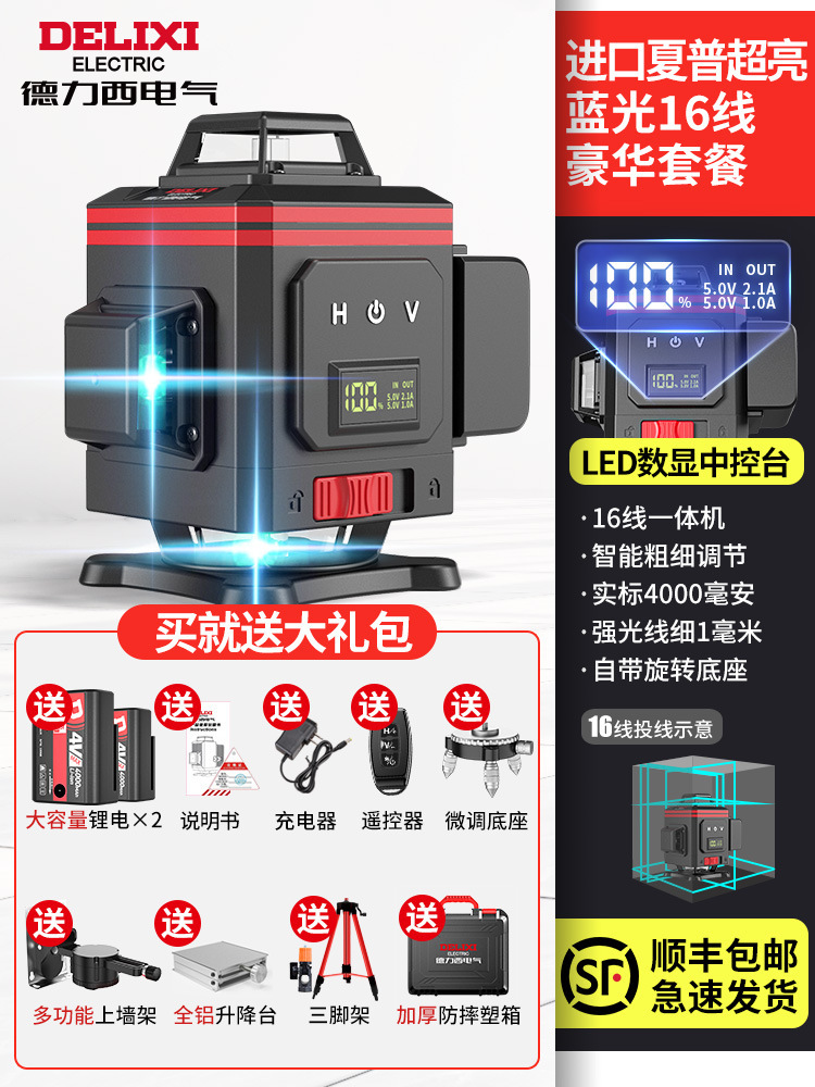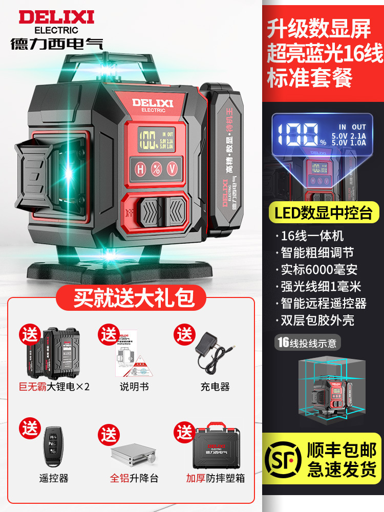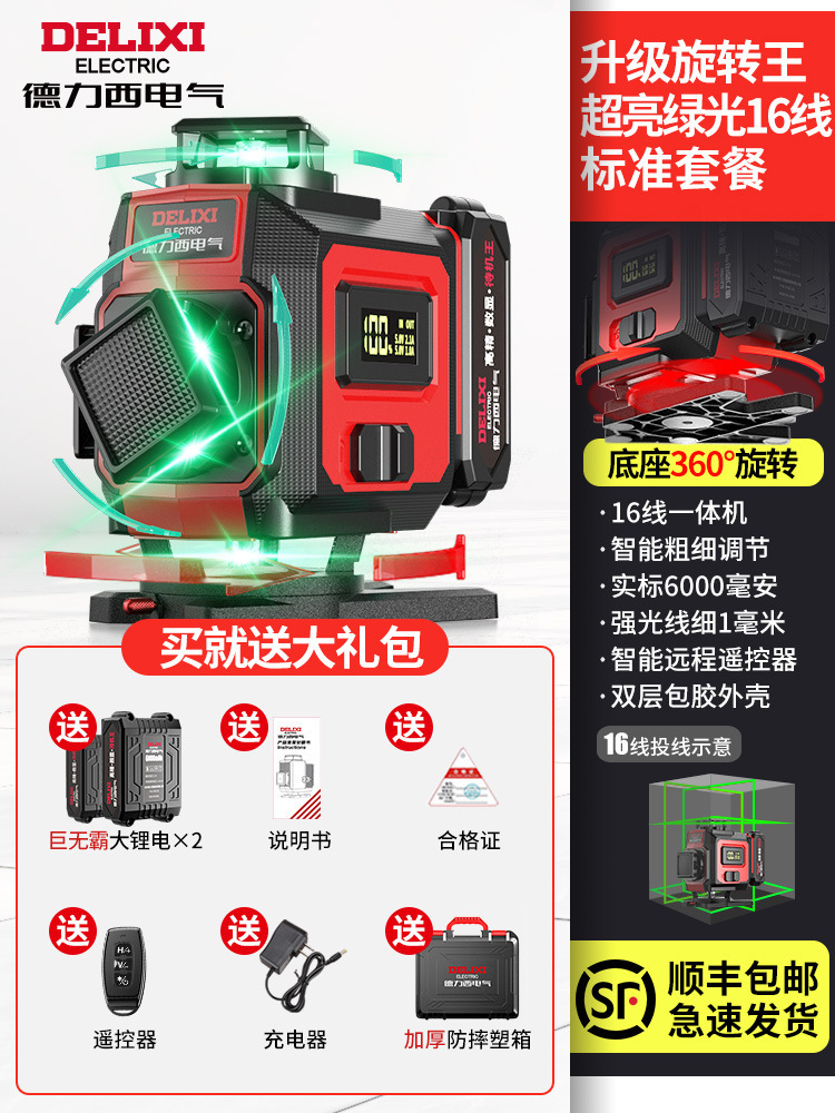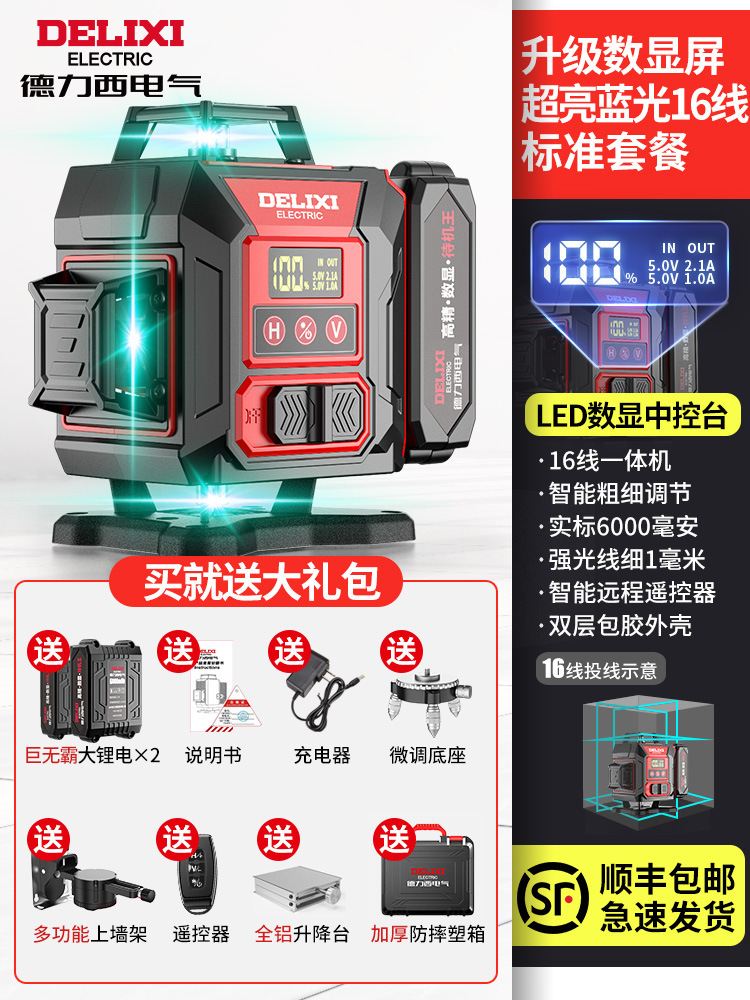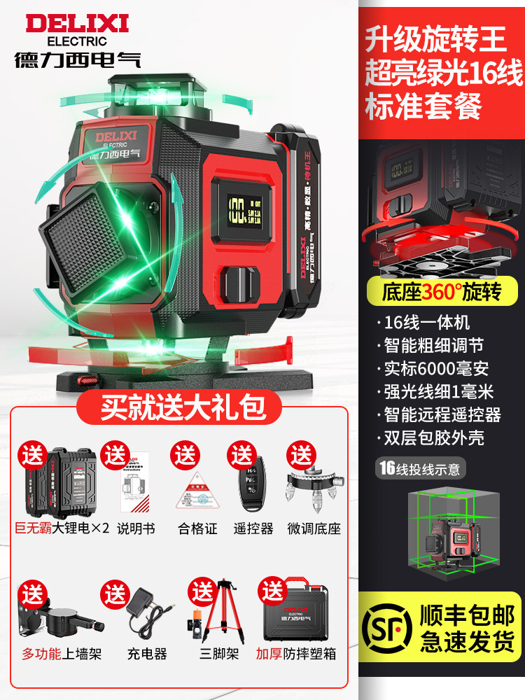 [professional-grade digital display central control] super bright green light 16-line big mac dual battery + wall mount + base + tripod