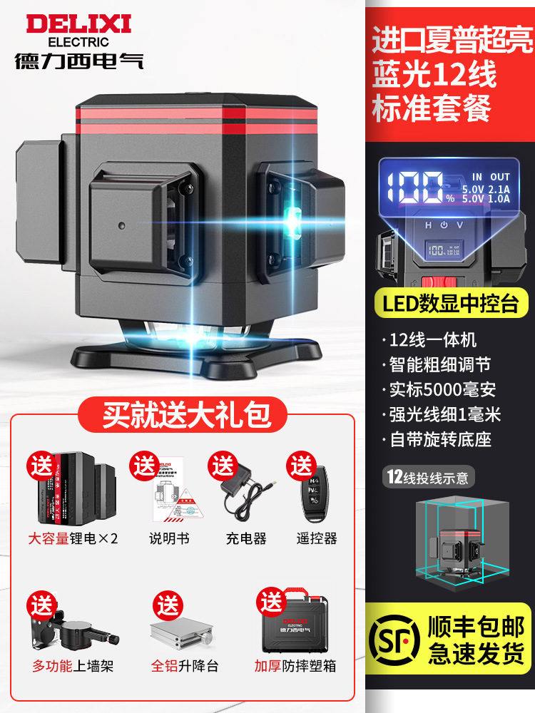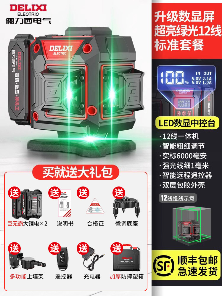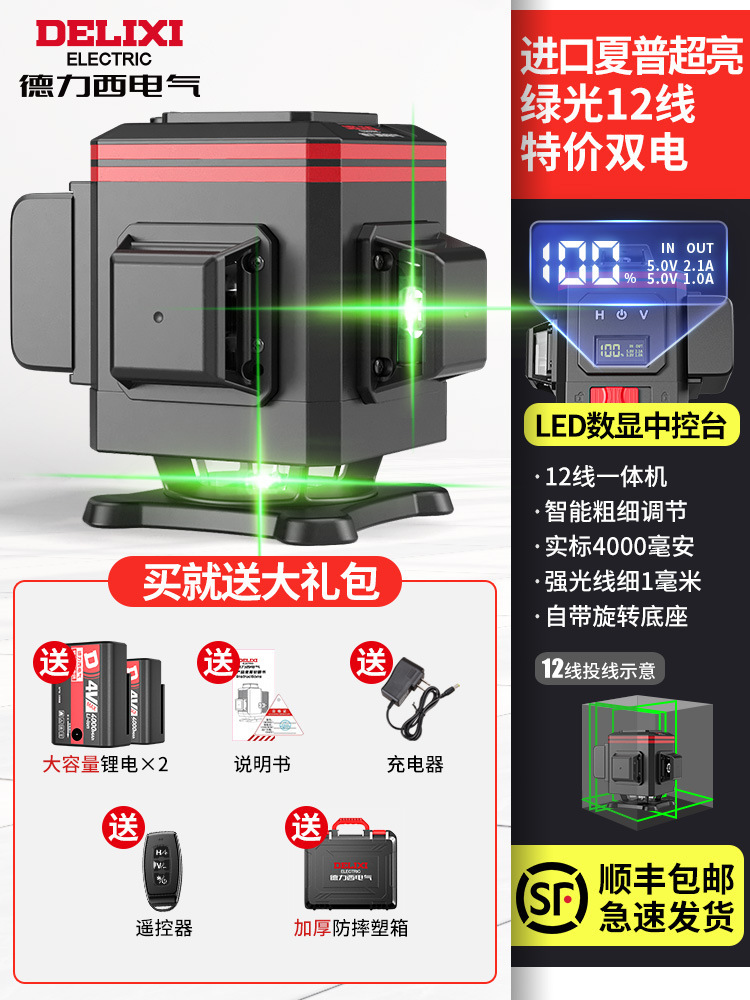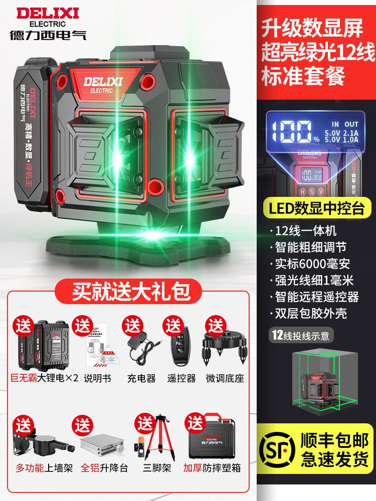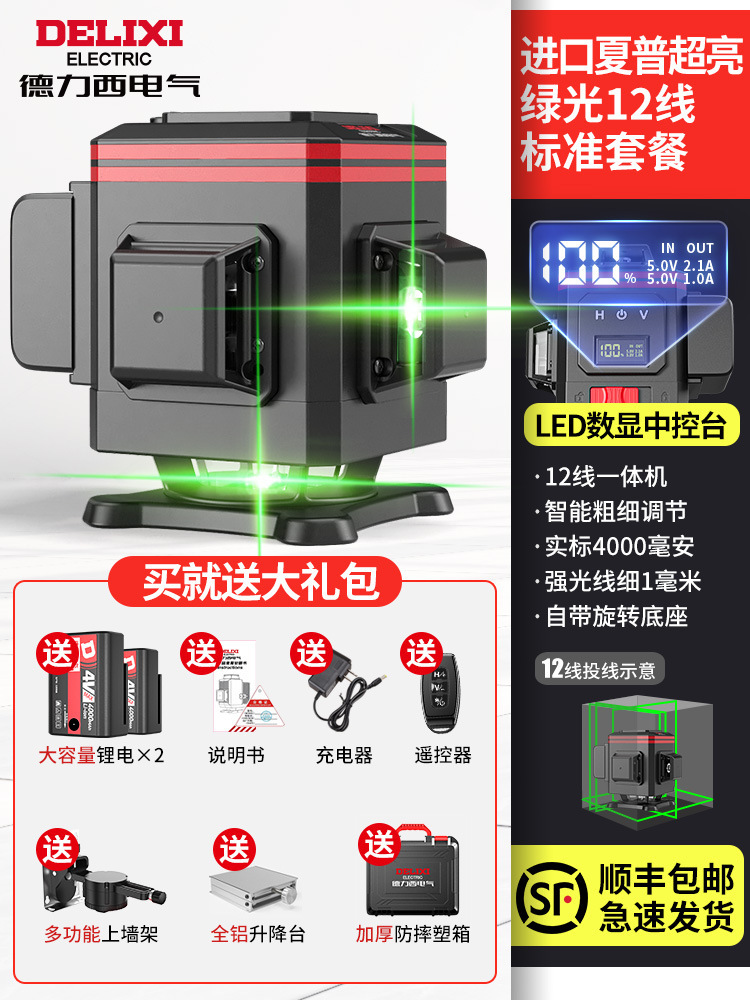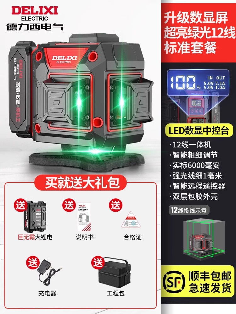 [professional-grade digital display central control] super bright green light 12-line big mac dual battery + wall mount + base + tripod