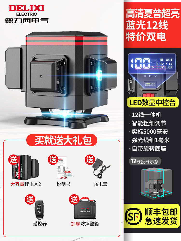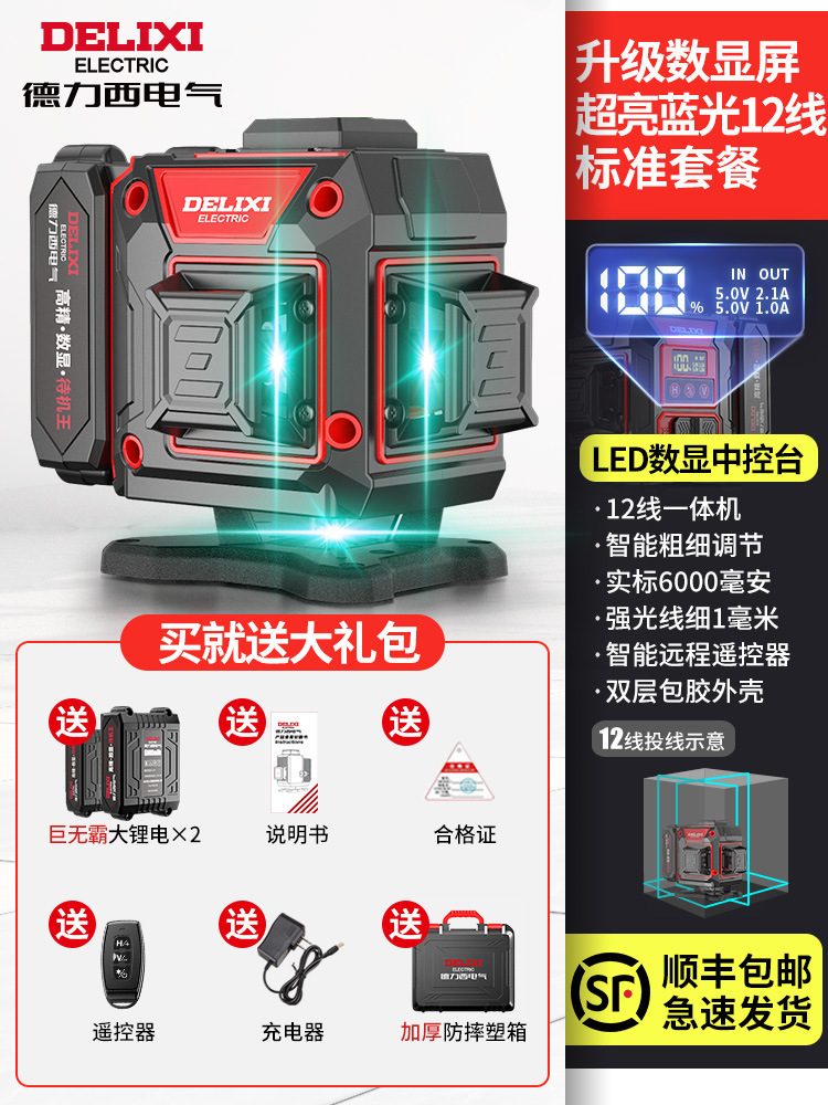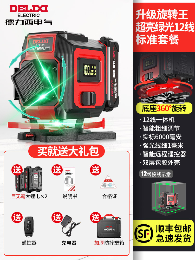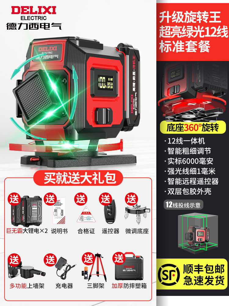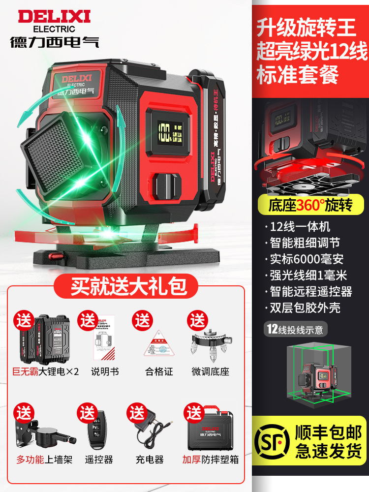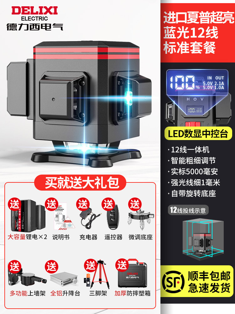 [professional-grade digital display central control] super bright green light 12-line big mac dual battery + wall mount + base + tripod