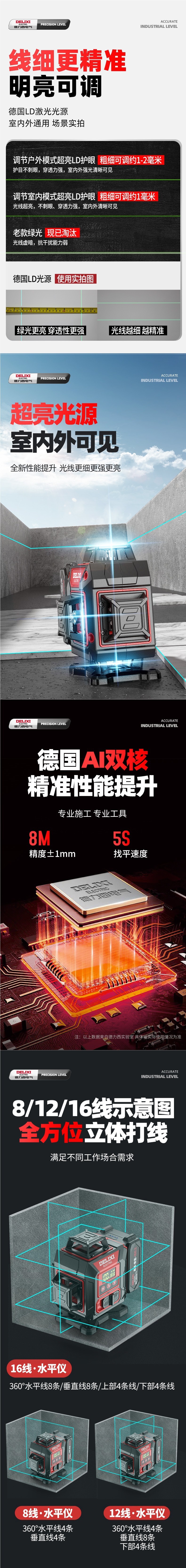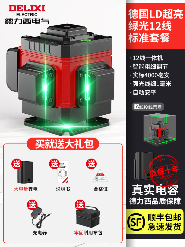 [super bright green light 12 lines imported from germany] digital display dual power + wall mount + base + tripod