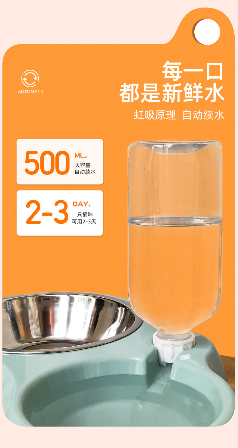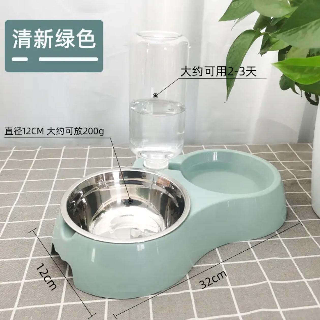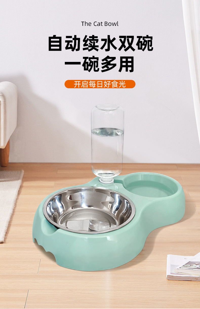 Cat and dog feeding bowl/green [comes with water bottle + stainless steel bowl]