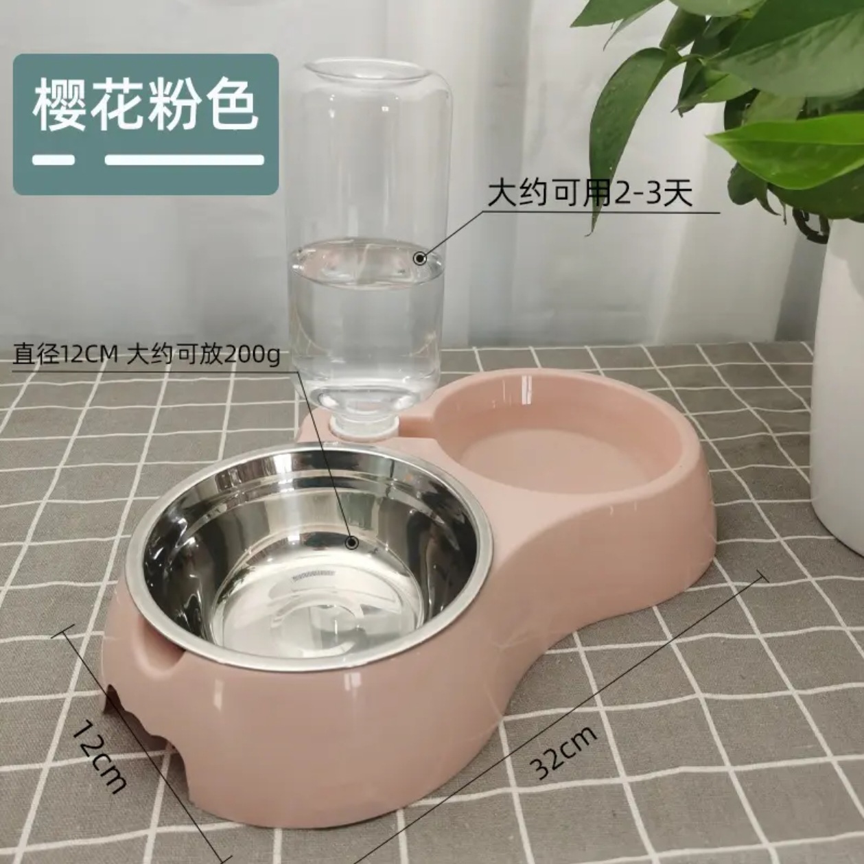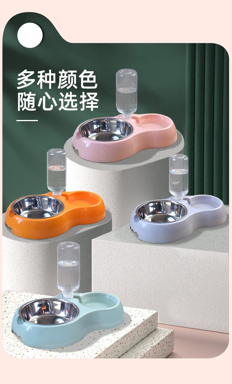 Cat and dog feeding bowl/pink [comes with water bottle + stainless steel bowl]