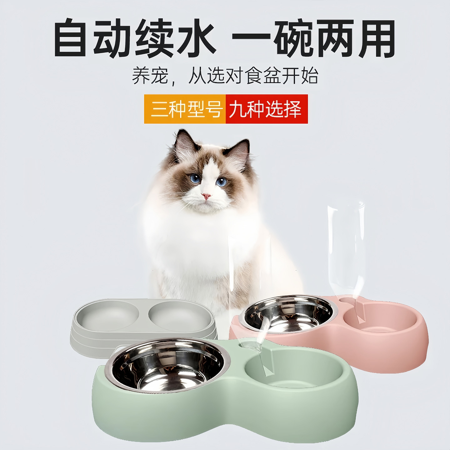 Cat and dog feeding bowl/grey [comes with water bottle + stainless steel bowl]