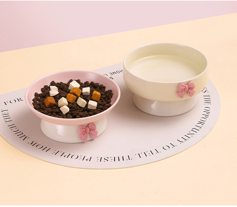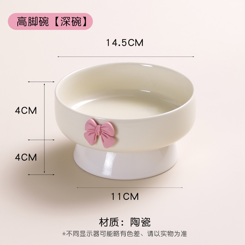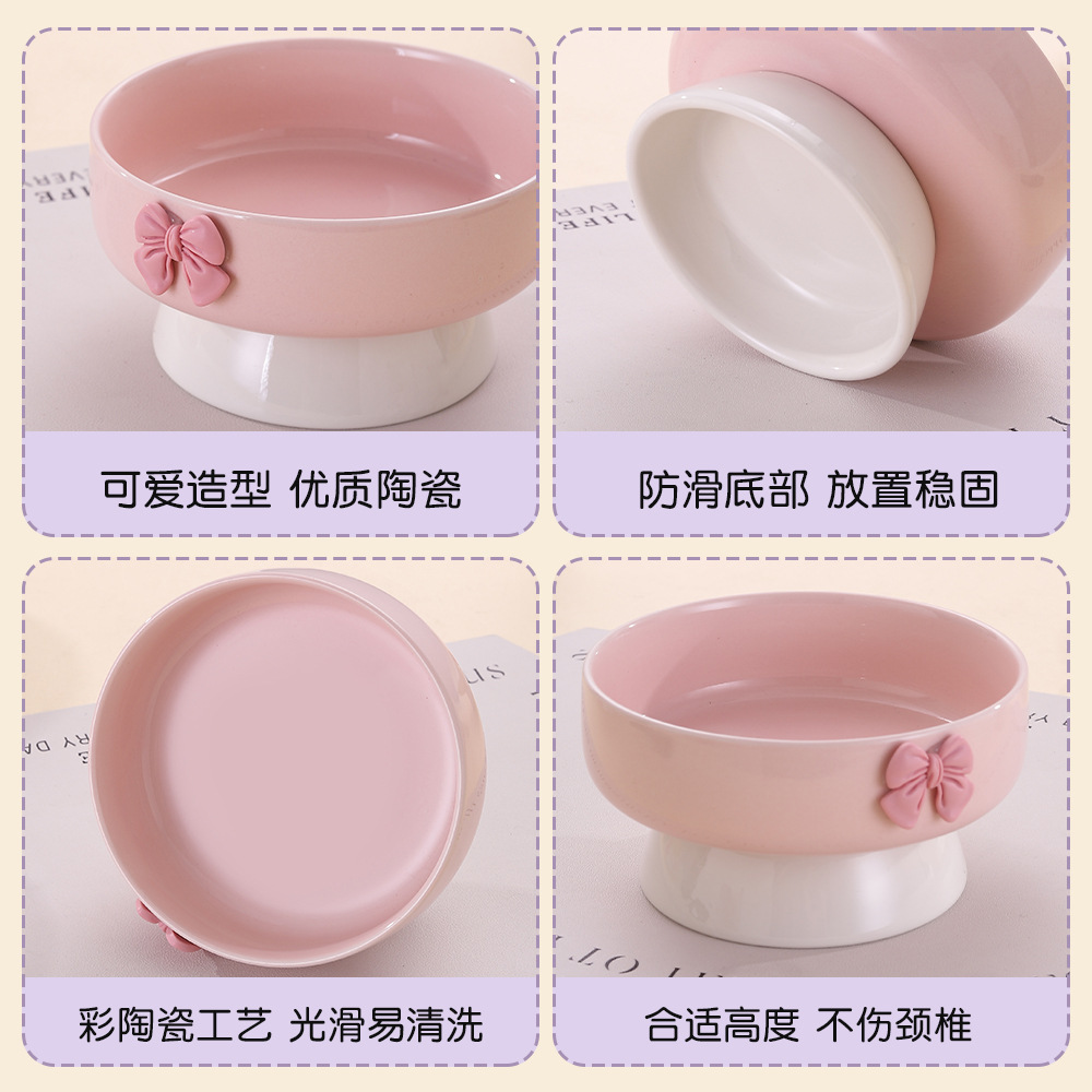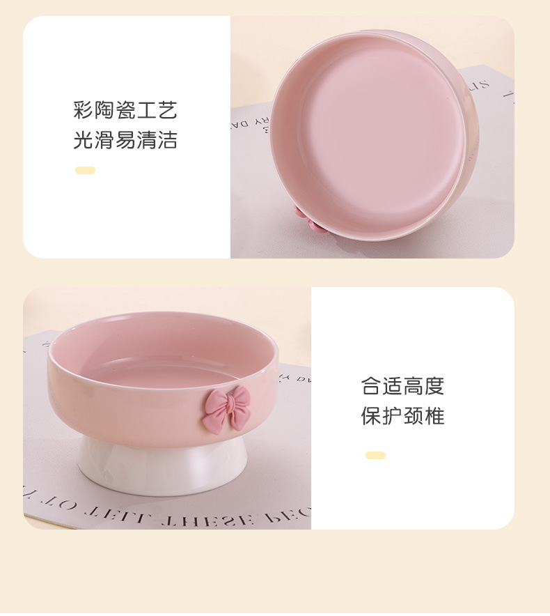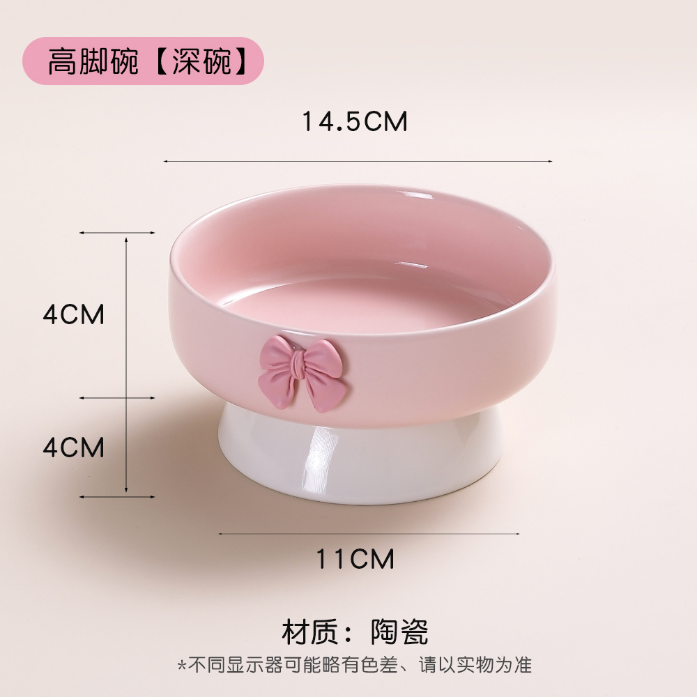 Water and food bowl [ceramic bowl + exquisite bow] cherry blossom color