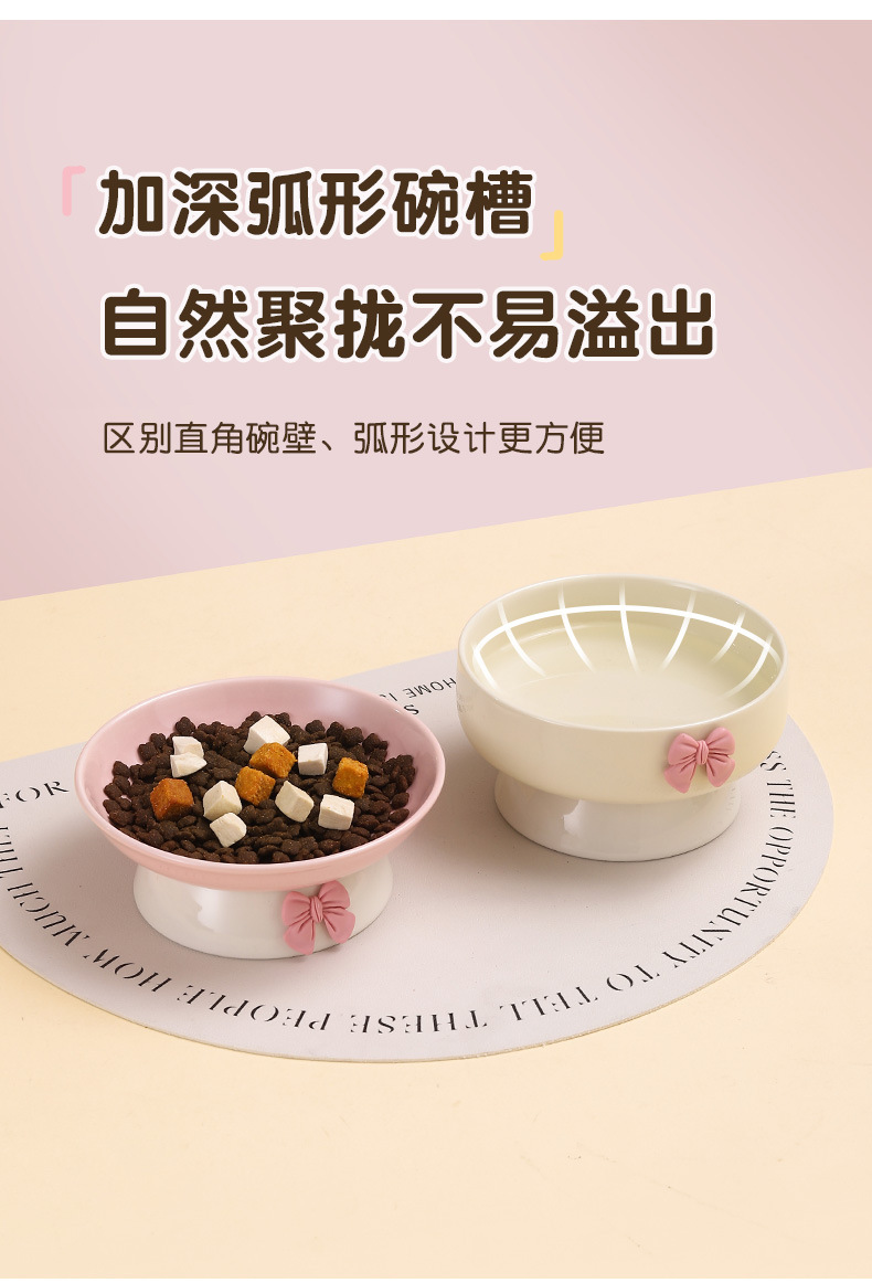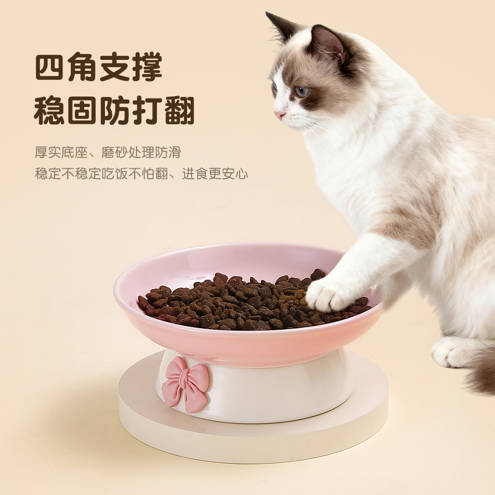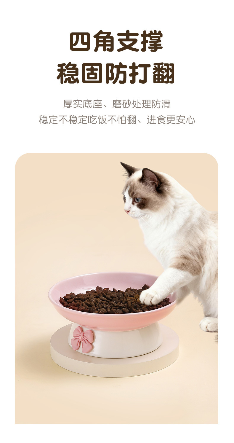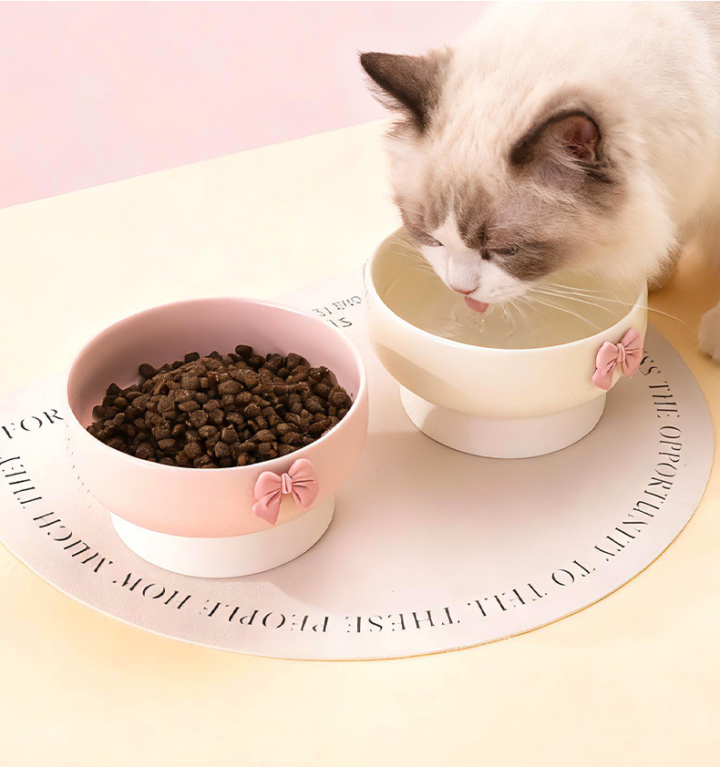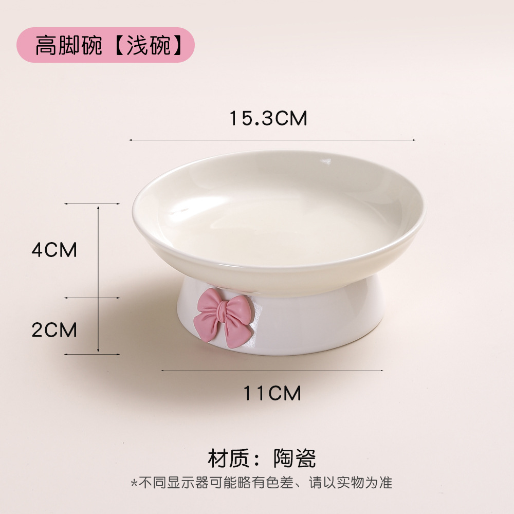 Water and food bowl [ceramic bowl + exquisite bow] cherry blossom color