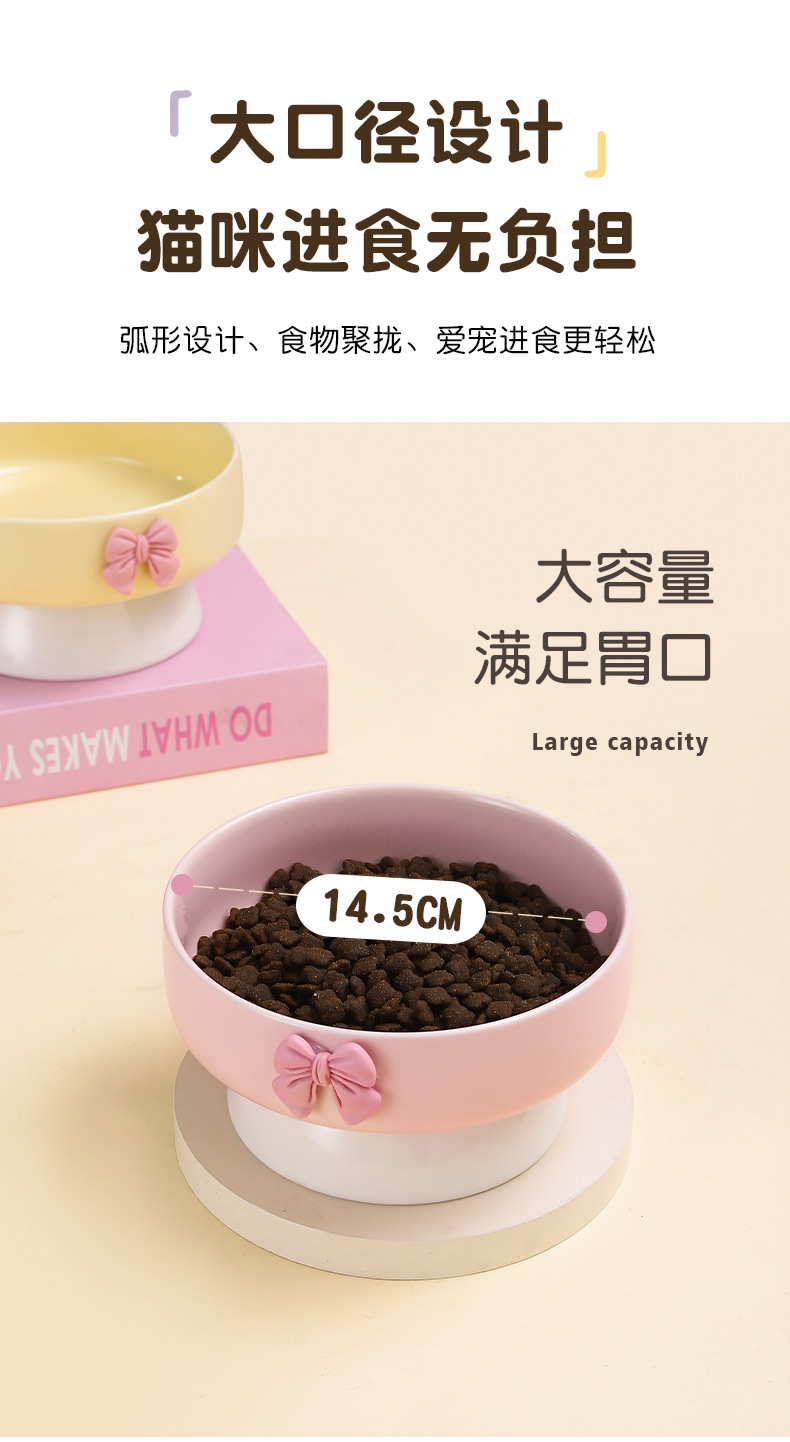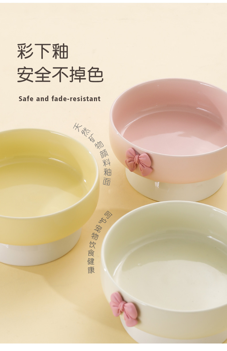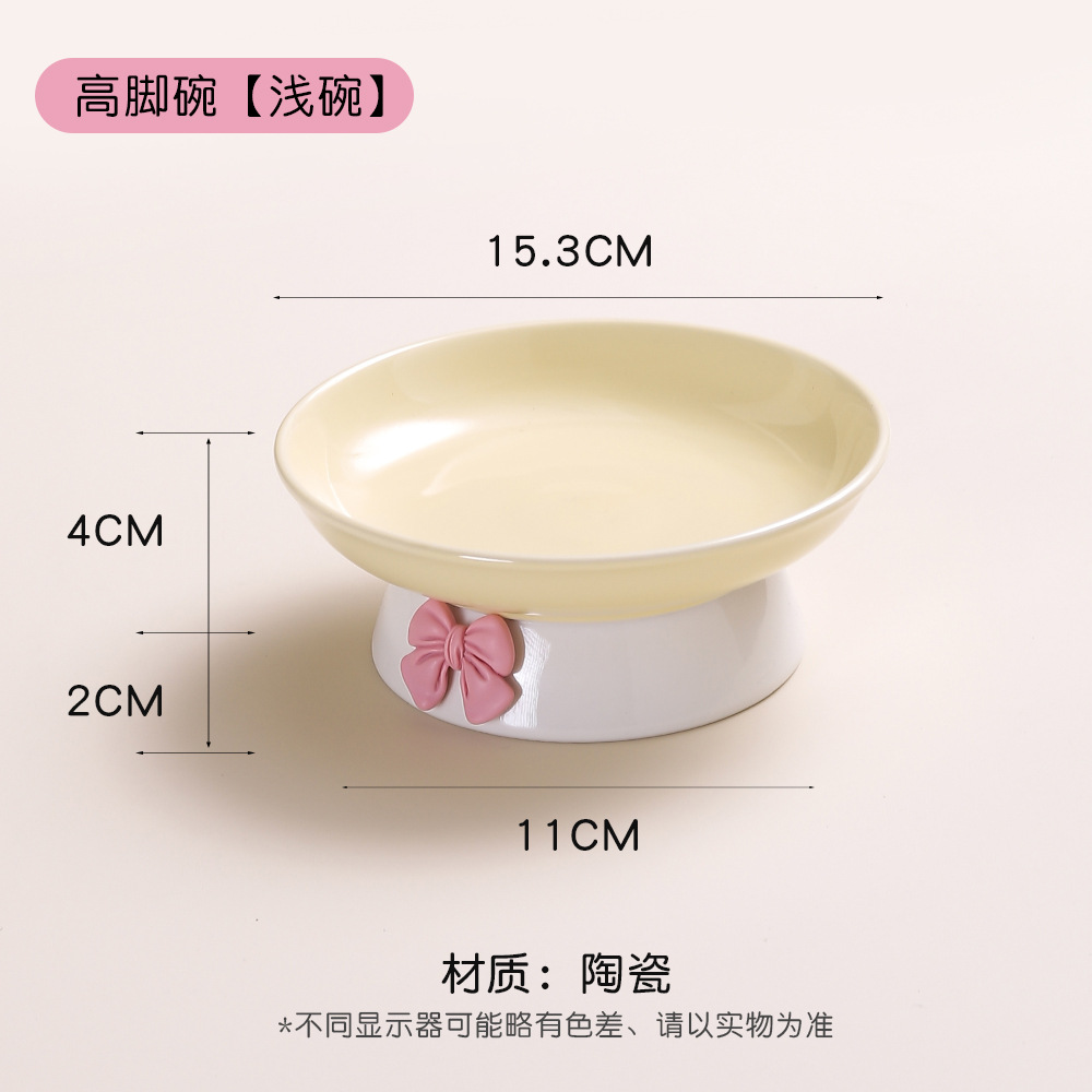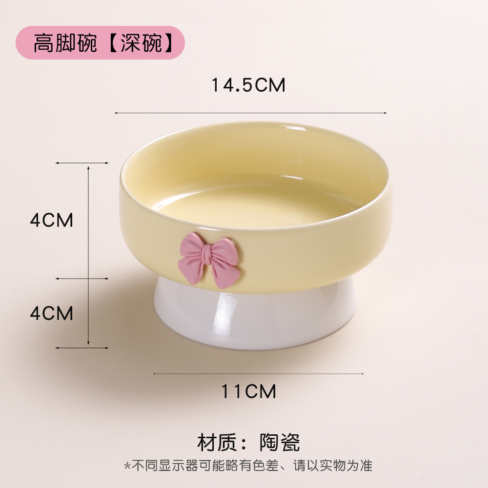 Water and food bowl [ceramic bowl + exquisite bow] light yellow