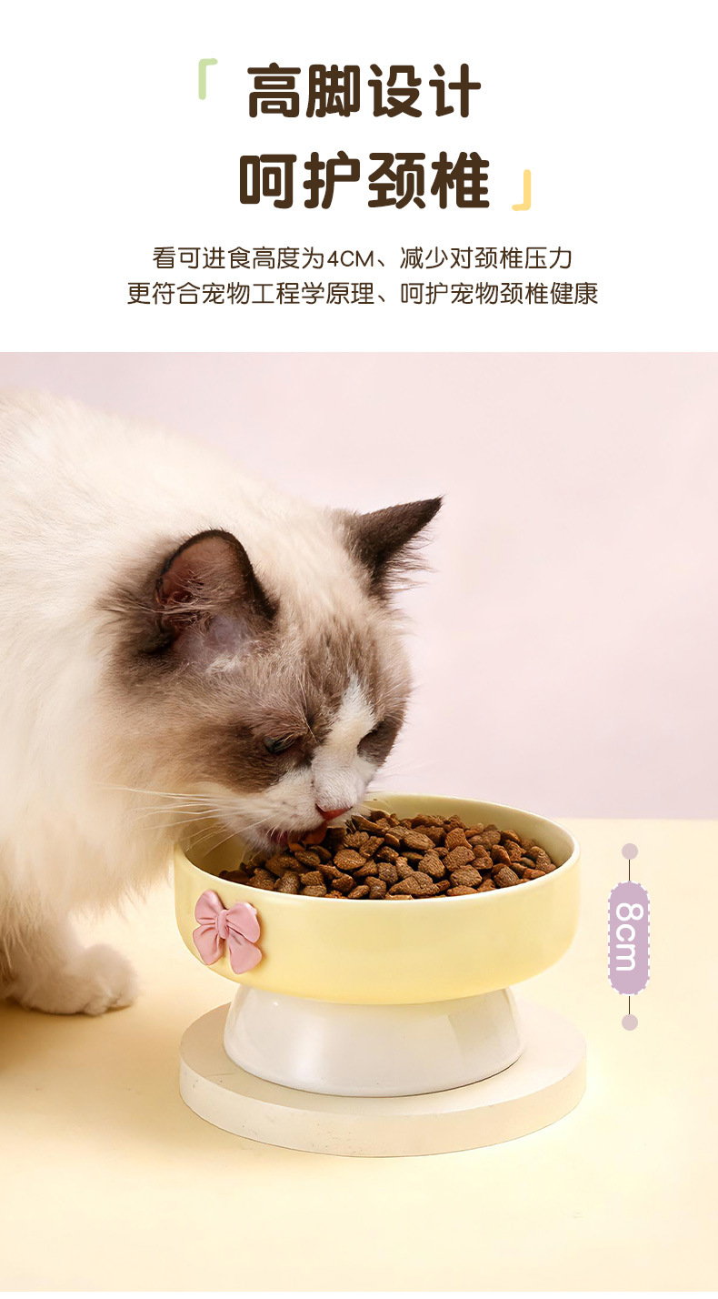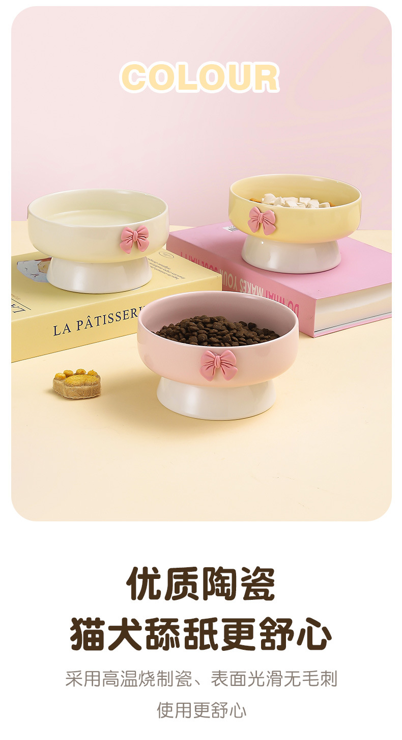 Water and food bowl [ceramic bowl + exquisite bow] creamy yellow