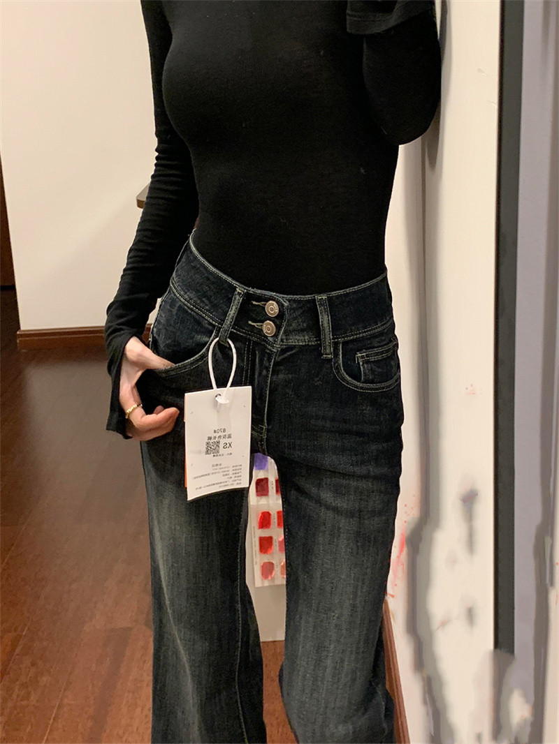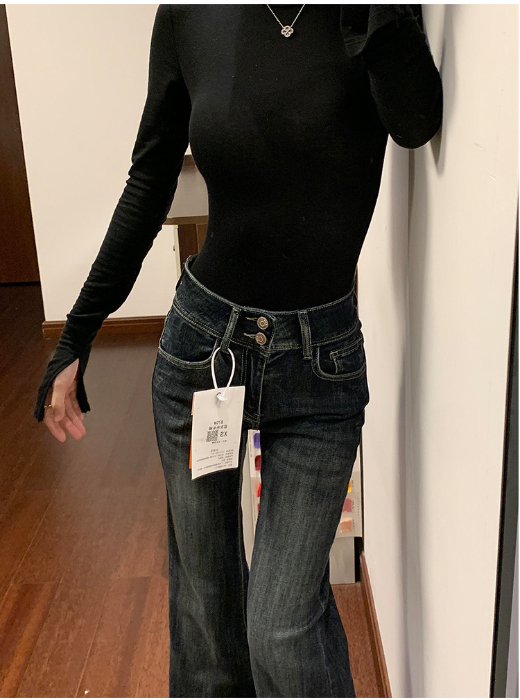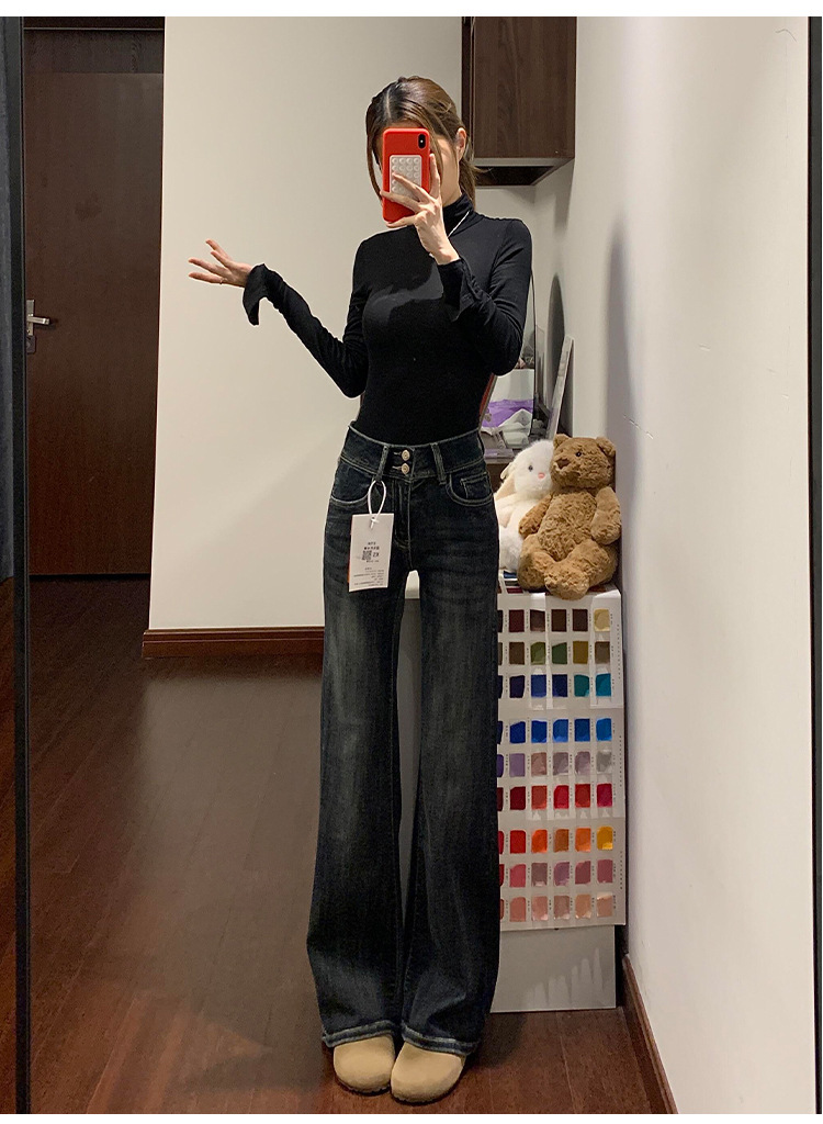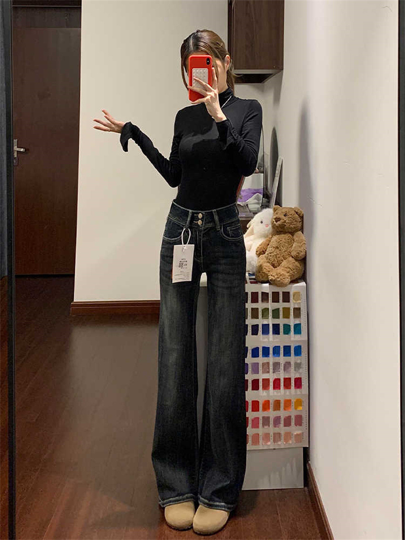 Thin Bootcut Jeans for Women Autum 2025 New American Retro Blue Gray High Waist Elastic Floor-Length Flared Pants
