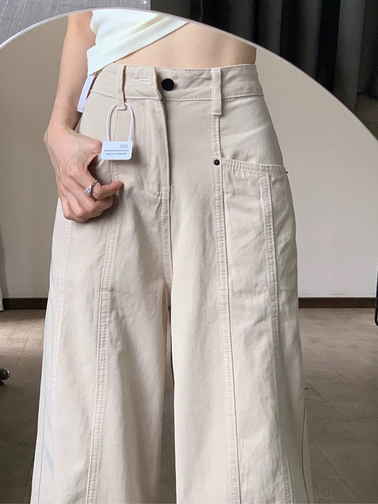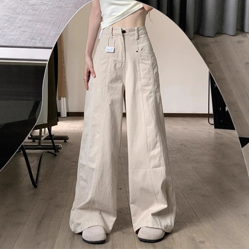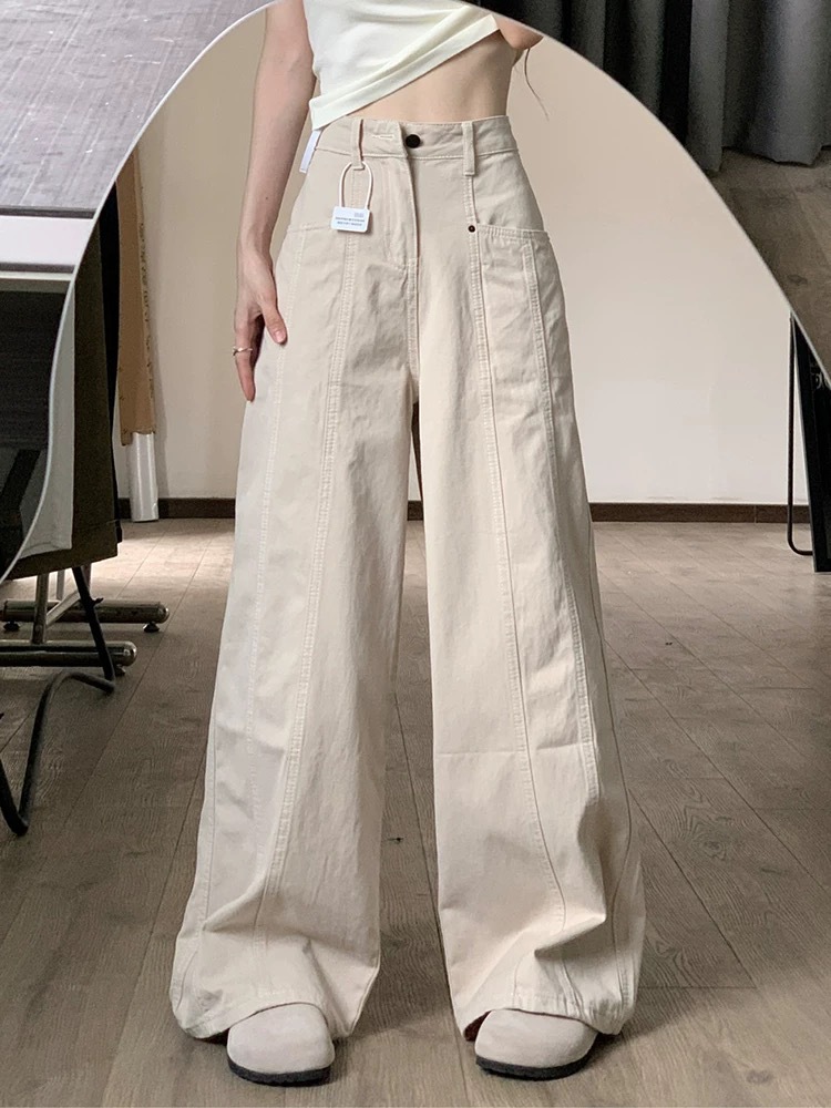 Apricot-Colored Wide-Leg Jeans for Women 2026 New Style for Plus-Size Girls, High-Waisted, Slimming, Pear-Shaped Body, Straight Wide-Leg Pants