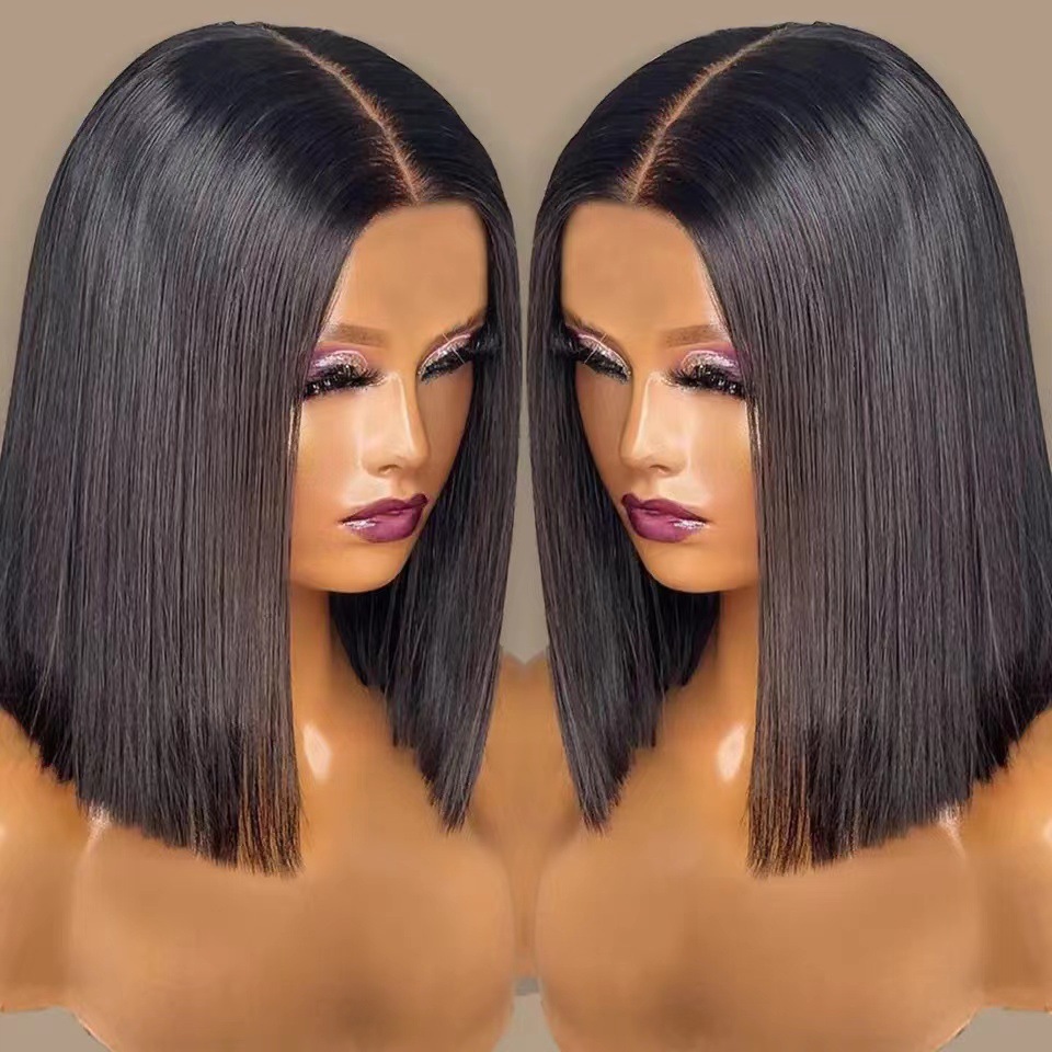 Cross-Border New Short Straight Bob Wigs, Lace Front Bob Synthetic Fiber Wig, Fashionable and Natural Realistic