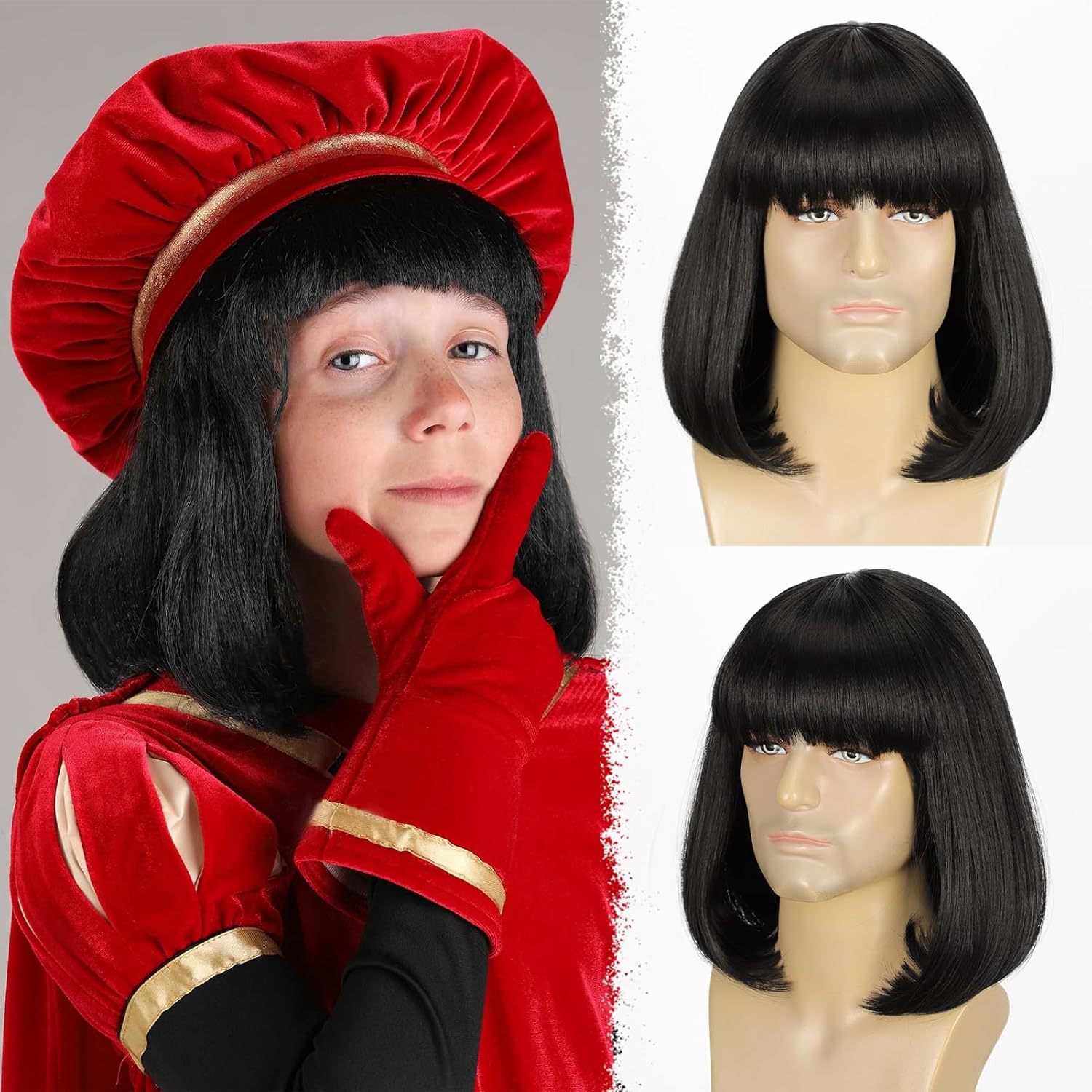 Cross-Border Wig Black Short Hair Bob Wig with Bangs Bob Inner Buckle Boys Hair Cos King Black Wig