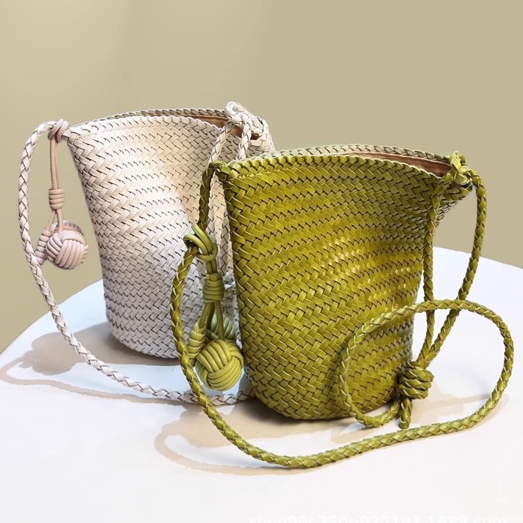 2026 New Handbag Straw Woven Bag Women's Trendy Retro Bucket Bag Versatile Shoulder Crossbody Bag Woven Bag Wholesale