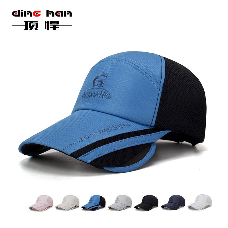Spring and Summer new retractable lengthened brim mesh cap men's outdoor fishing baseball cap sun protection hat wholesale