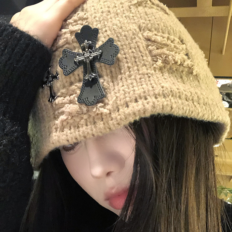 Korean and Japanese Thick Knit Hats for Women, Autumn and Winter Pullover Hats, Distressed Bucket Hats, Trendy Cross-Pattern Fisherman Knit Hats