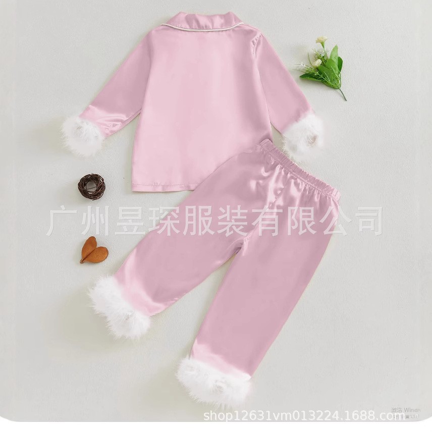 Amazon Ebay Autumn Children's Loungewear for Toddlers and Young Children Christmas Long-Sleeve Cardigan Lapel Pajama Set