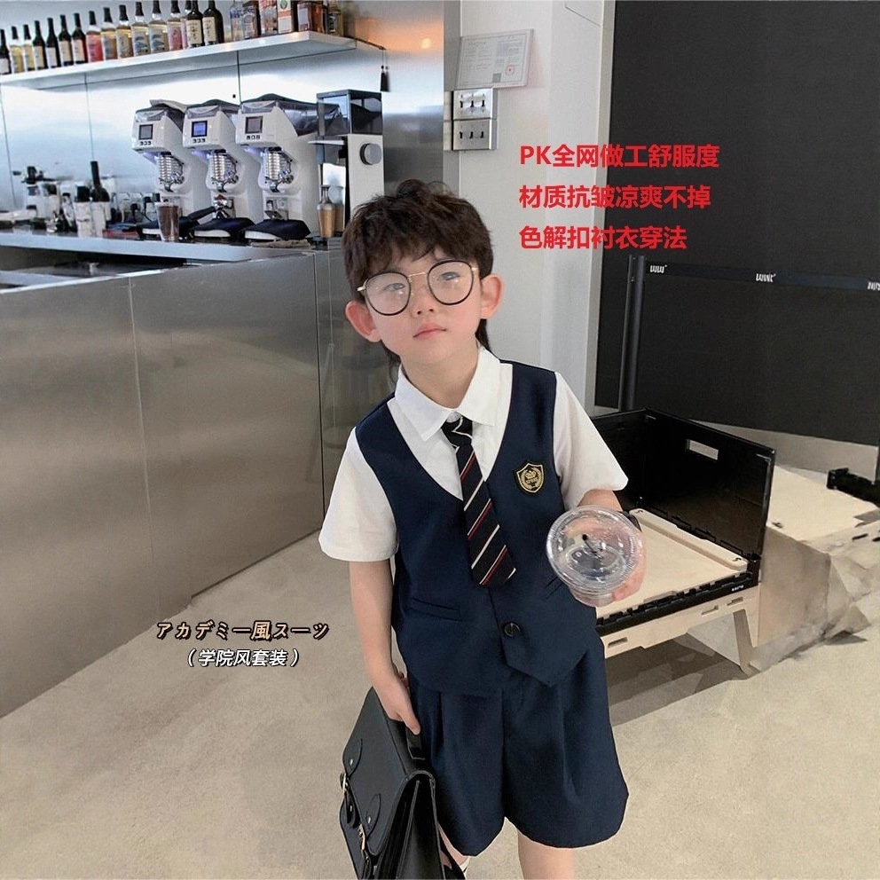Children's Suit Jk Academy Style Set Ins Trendy Children's Stylish Fake Two-Piece White Shirt Tie Flower Boy Performance