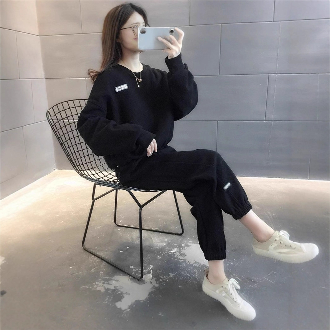 Cross-Border Sportswear Suit for Women in Autumn and Winter New Fashion Loose Round Neck Sweatshirt Casual Leggings Sweatpants Two-Piece Set