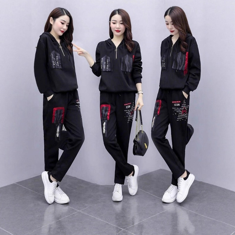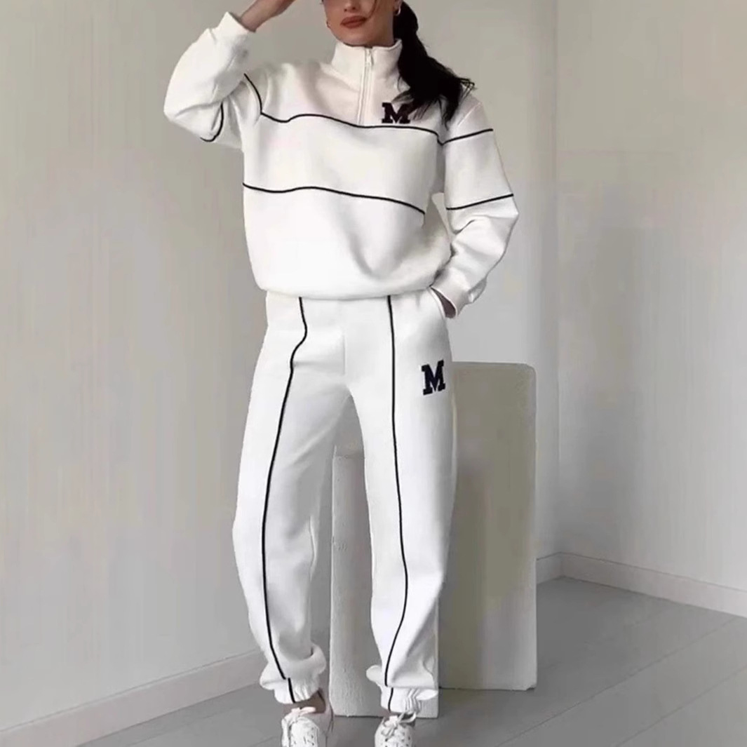 2025 Autumn and Winter European and American Amazon Cross-Border Export Women's Sweatshirt Letter Heat Transfer Zipper Casual Sports Two-Piece Set