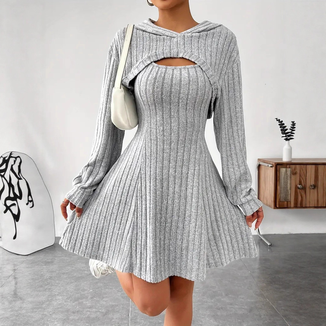 Amazon European and American Cross-Border Dress Set Long-Sleeved Hoodie Top and Sleeveless A-Line Vest Dress Two-Piece Set