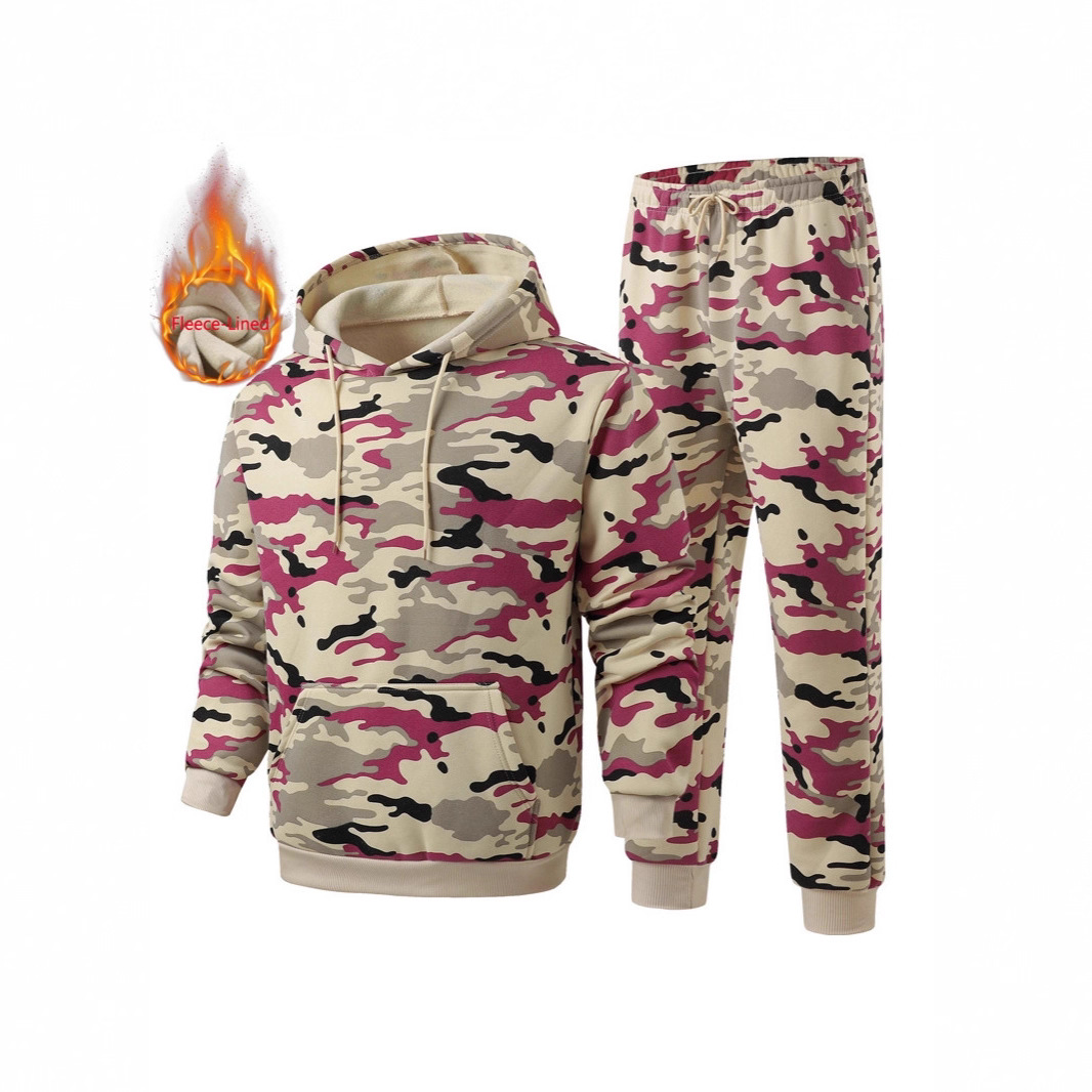 Cross-border Europe and the United States new sweater hoodie suit outdoor leisure men's and women's fleece-lined two-piece new wholesale
