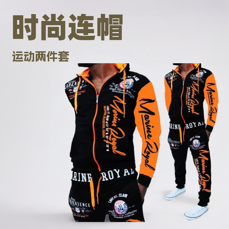 Foreign trade cross-border men's fashion two-piece hooded sweatshirt and pants hooded sportswear in large quantities in stock