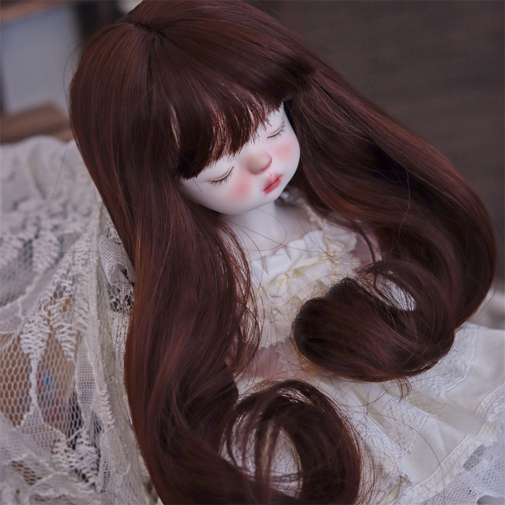 bjd doll wig 6 points head cover doll fake hair imitation milk silk dark brown long curly hair small cloth doll head hair cover