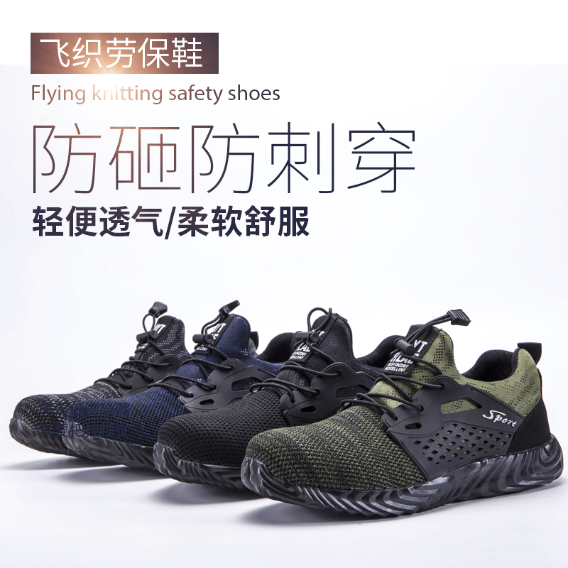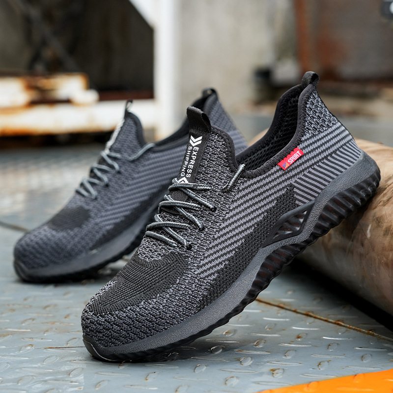 Cross-Border Summer Fly-Woven Breathable Labor Protection Shoes, Steel Toe Caps, Anti-Smash, Anti-Puncture, Fashionable Work Protective Safety Shoes, Wear-Resistant