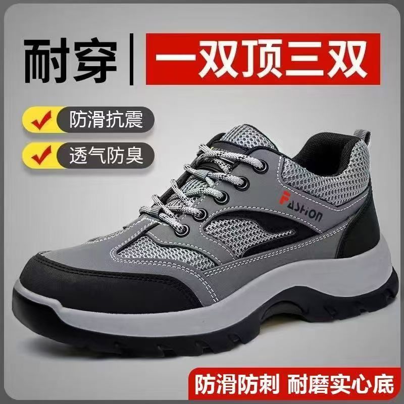 Summer Labor Protection Shoes for Men, Anti-Wear and Anti-Smash Shoes, Lightweight and Fashionable Work Shoes, Anti-Slip, Breathable, Safety Protective Shoes Wholesale