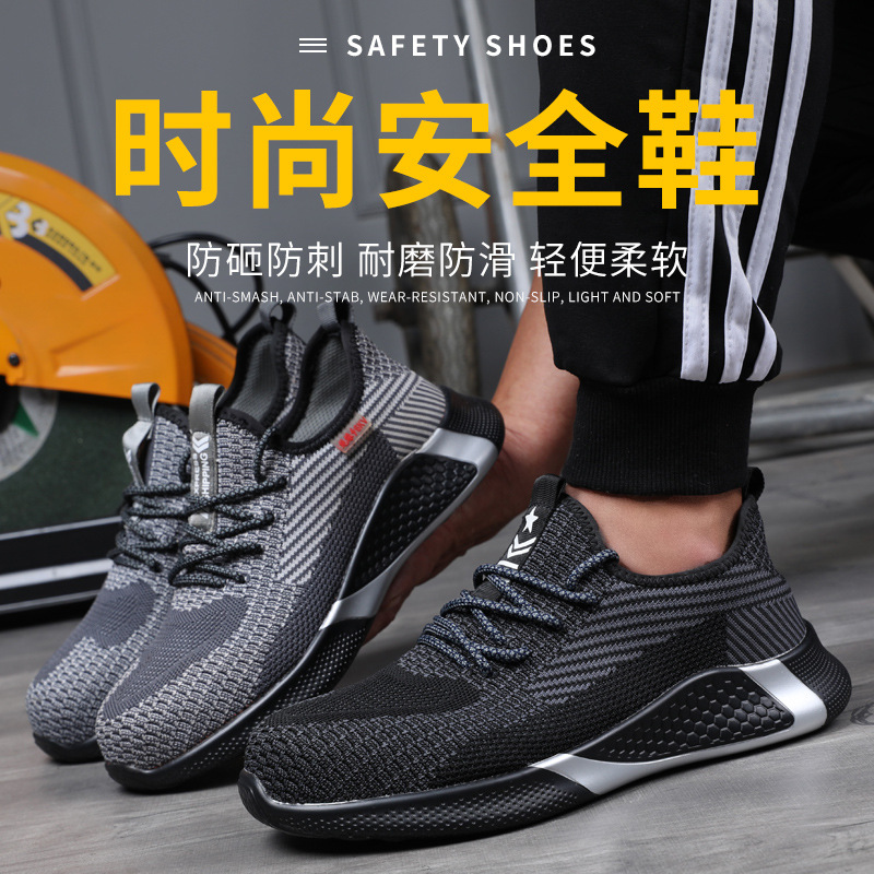Trendy Fashion Anti-smashing Anti-piercing Safety Protection Labor Protection Shoes Soft Breathable Fly Woven Work Shoes Non-slip Shoes
