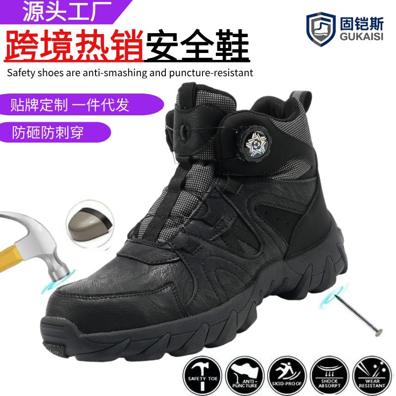Four Seasons Safety Shoes High-top Anti-smashing Anti-piercing Fashion Work Boots Men's Steel Toe Safety Safety Safety Shoes Cross-Border