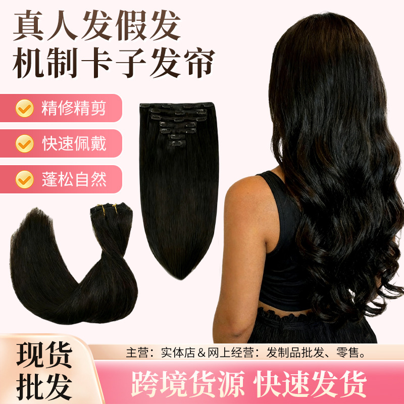 Clip-In Hair Extensions, Real Human Hair Wigs, Fluffy and Realistic Natural Long Hair, Trendy Colors, Foreign Trade Hair Extensions, Real Hair Pieces, Real Hair Wigs