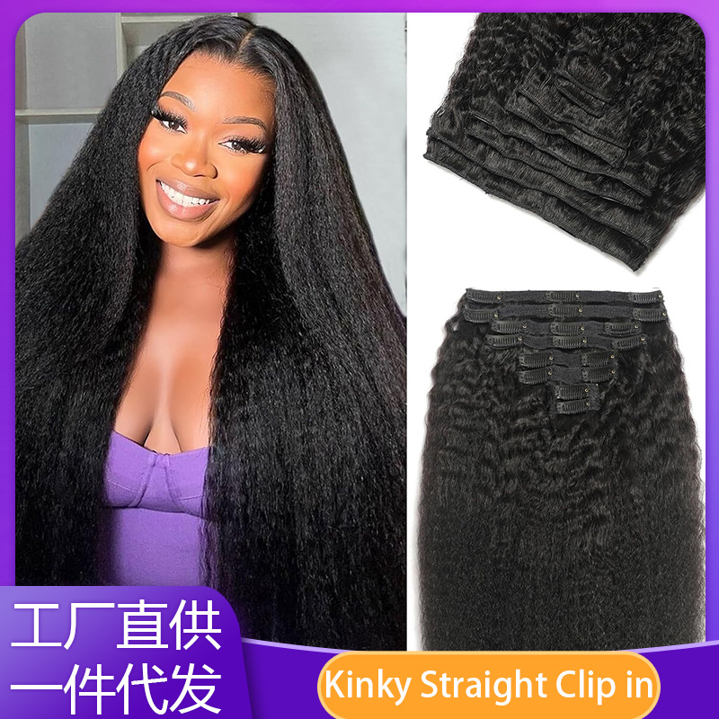 Clip in Human Hair Wig Clip Hair 8-Piece Set 18 Card Kinky Straight Human Hair Hair Curtain