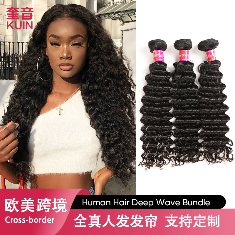 Xuchang factory real wig Deep wave natural color curly hair curtain Human hair bundles