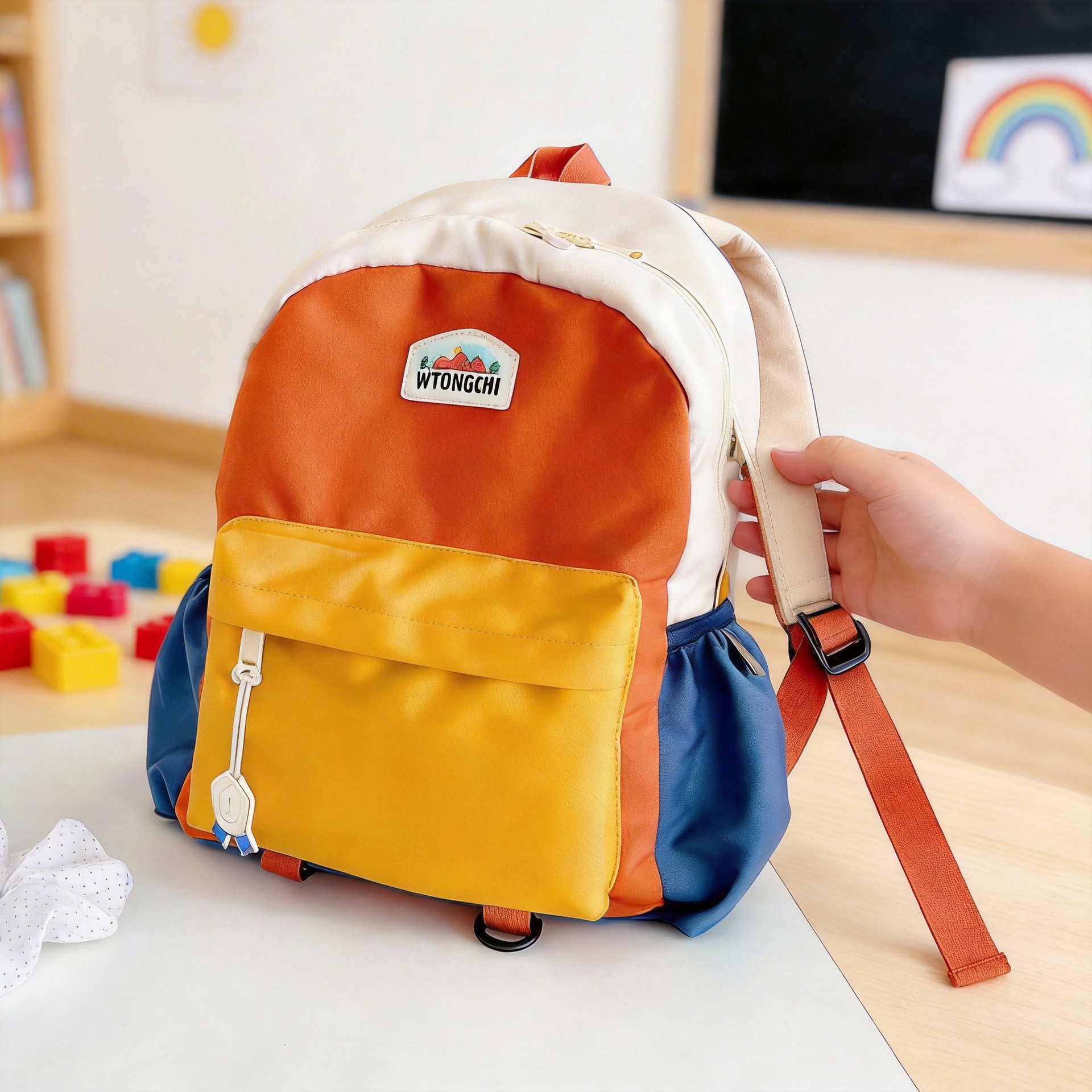 Contrast Color Cute Schoolbags for Kidsren, Girls, Primary School Students, Lightweight Color Matching Backpacks, High-Looking Kindergarten Travel Backpacks