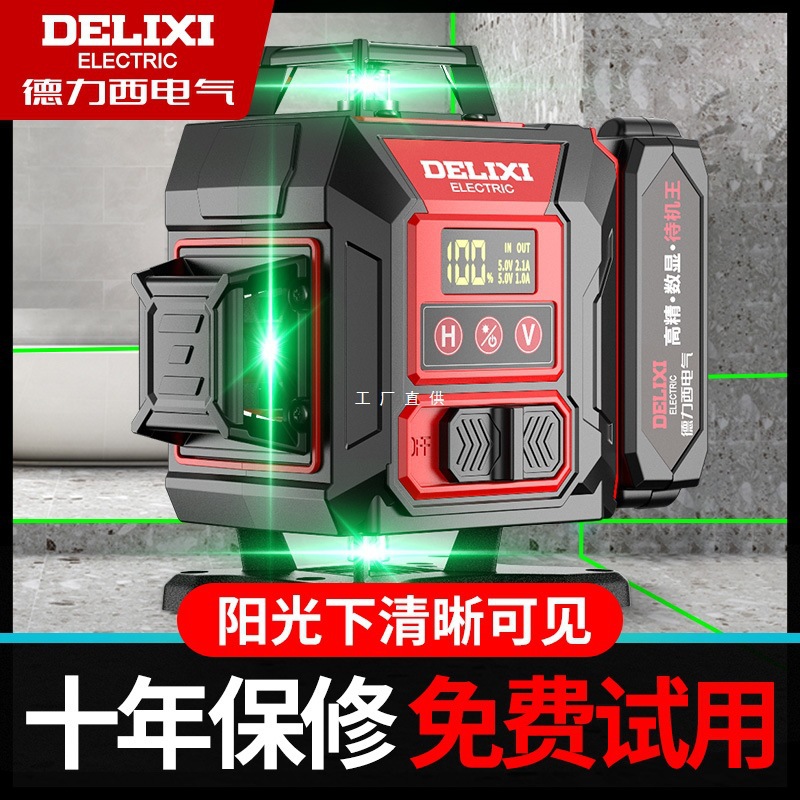 Delixi Infrared Level Meter High-Precision Strong Light Thin Line Outdoor Green Light 12-Line Laser Automatic Leveling Water Meter